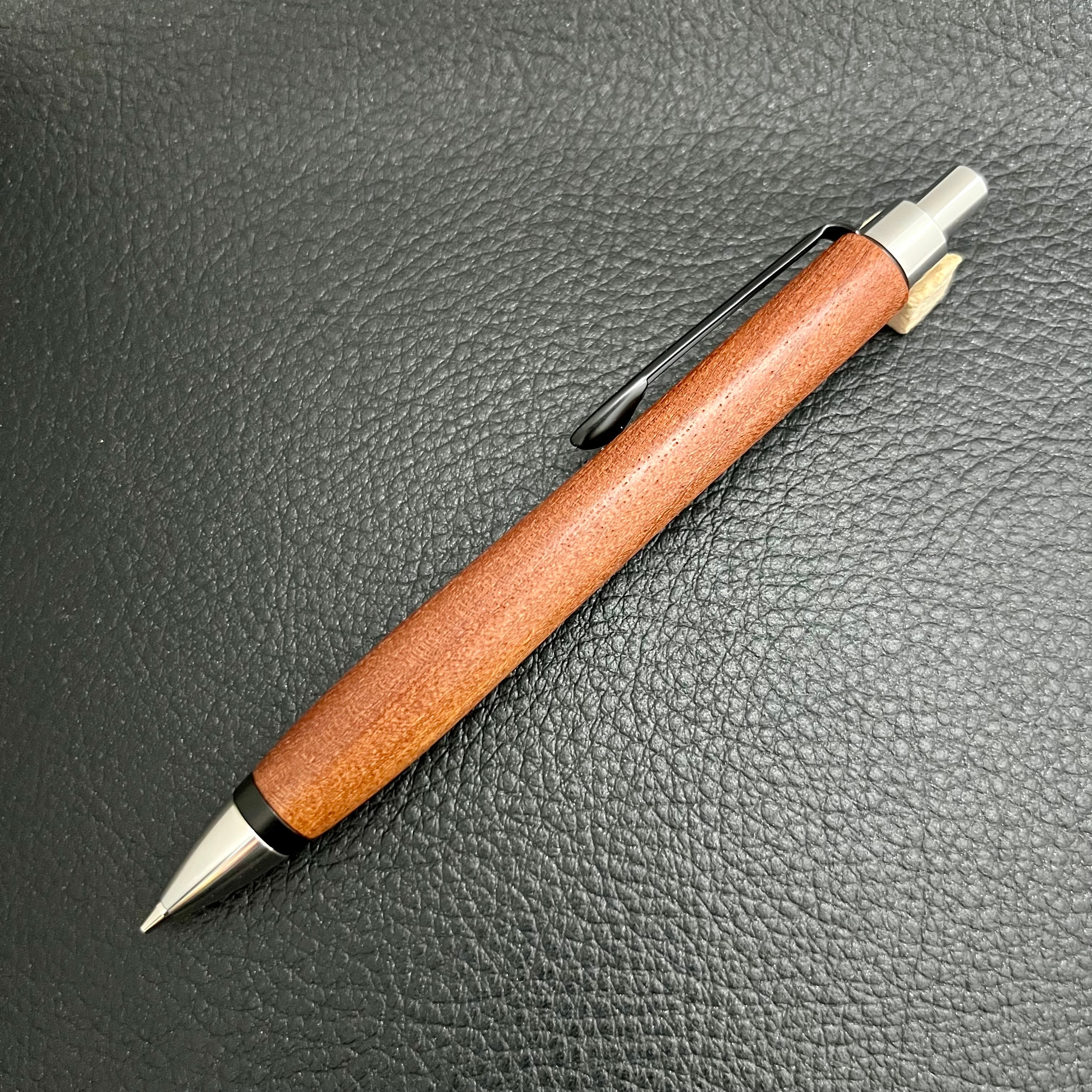 ペンシルは軸ブレが起こりにくい固定式口金を採用し、木の表情を最大限に楽しめる木軸の長さと、書き心地にこだわったバランスで金具を設計してあります。