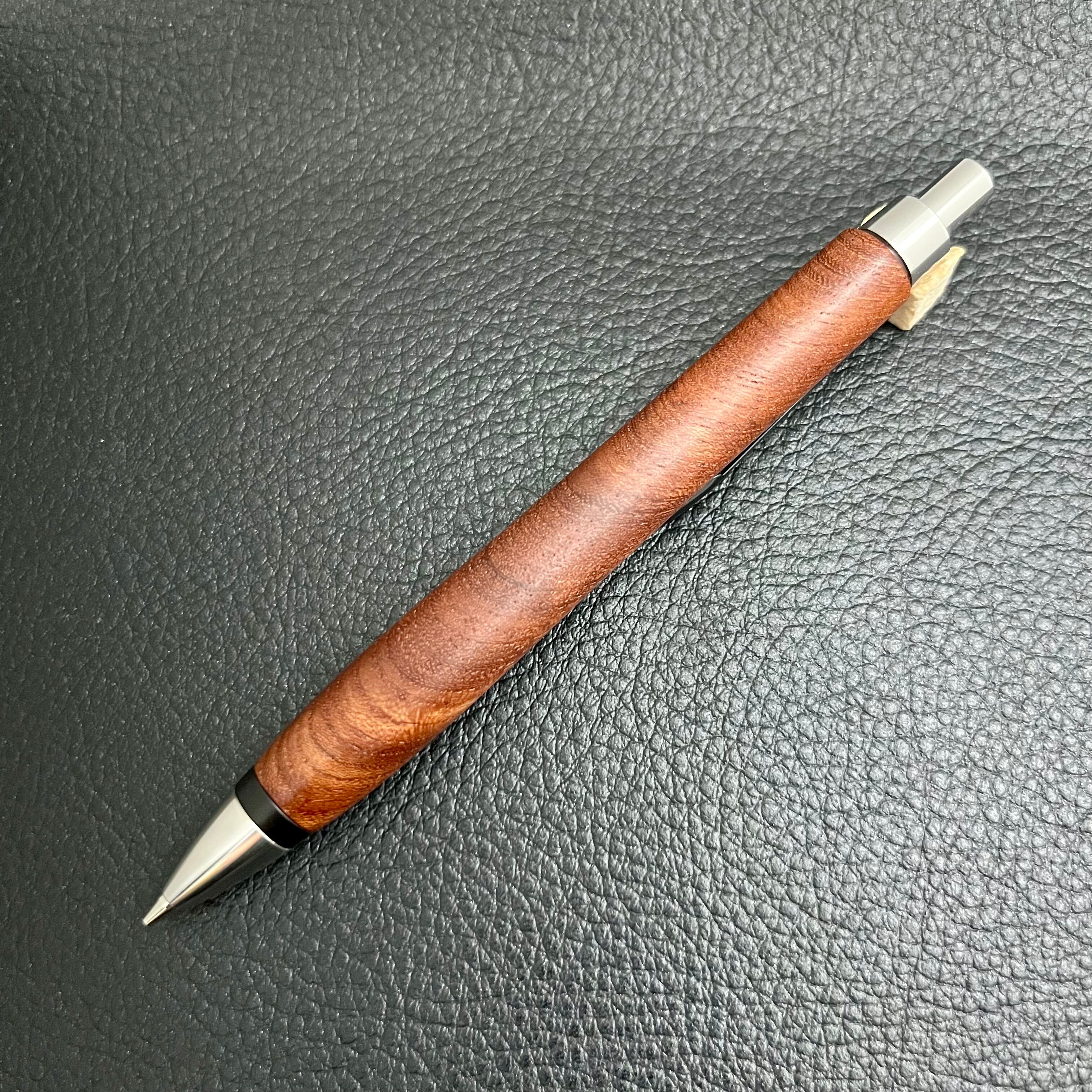 ペンシルは軸ブレが起こりにくい固定式口金を採用し、木の表情を最大限に楽しめる木軸の長さと、書き心地にこだわったバランスで金具を設計してあります。