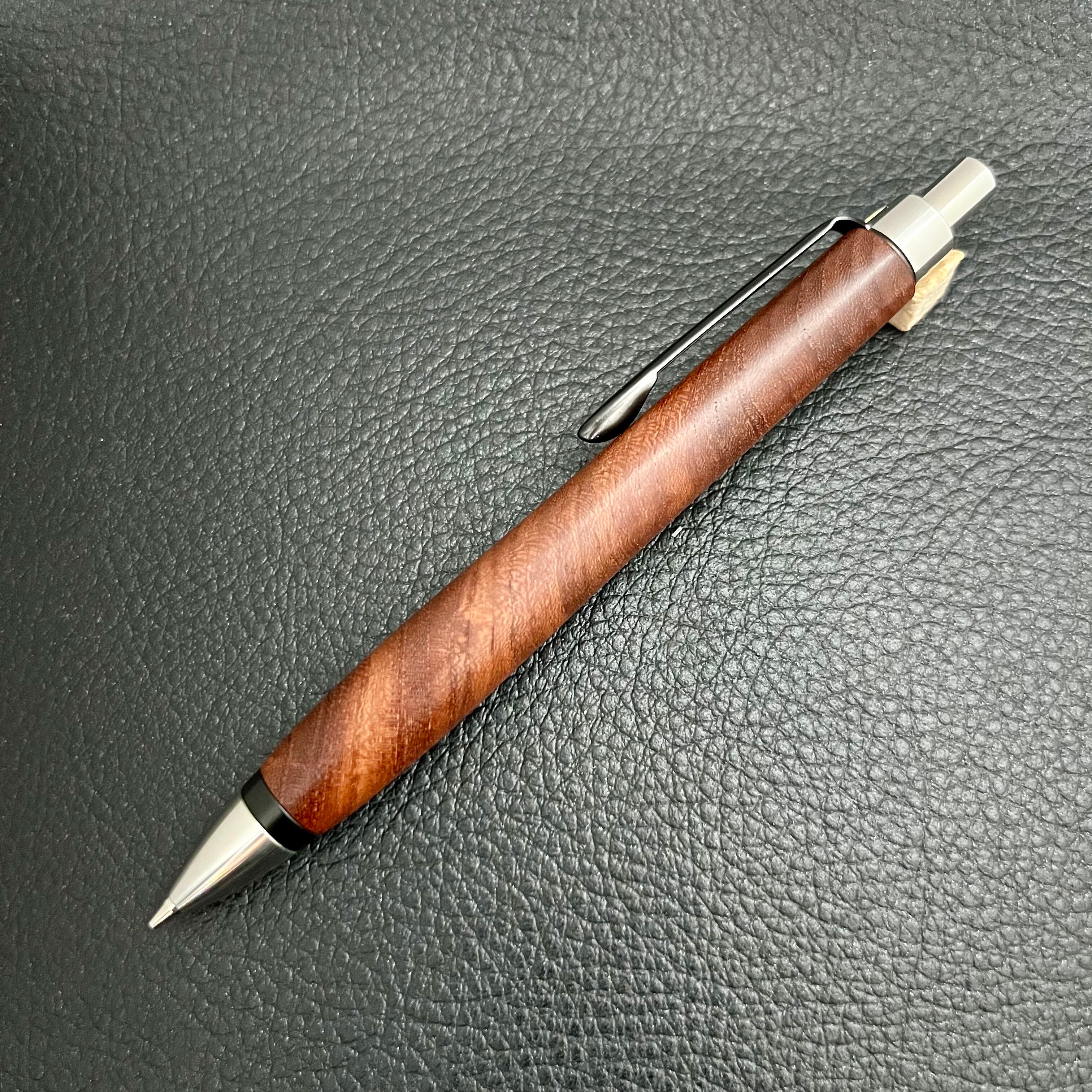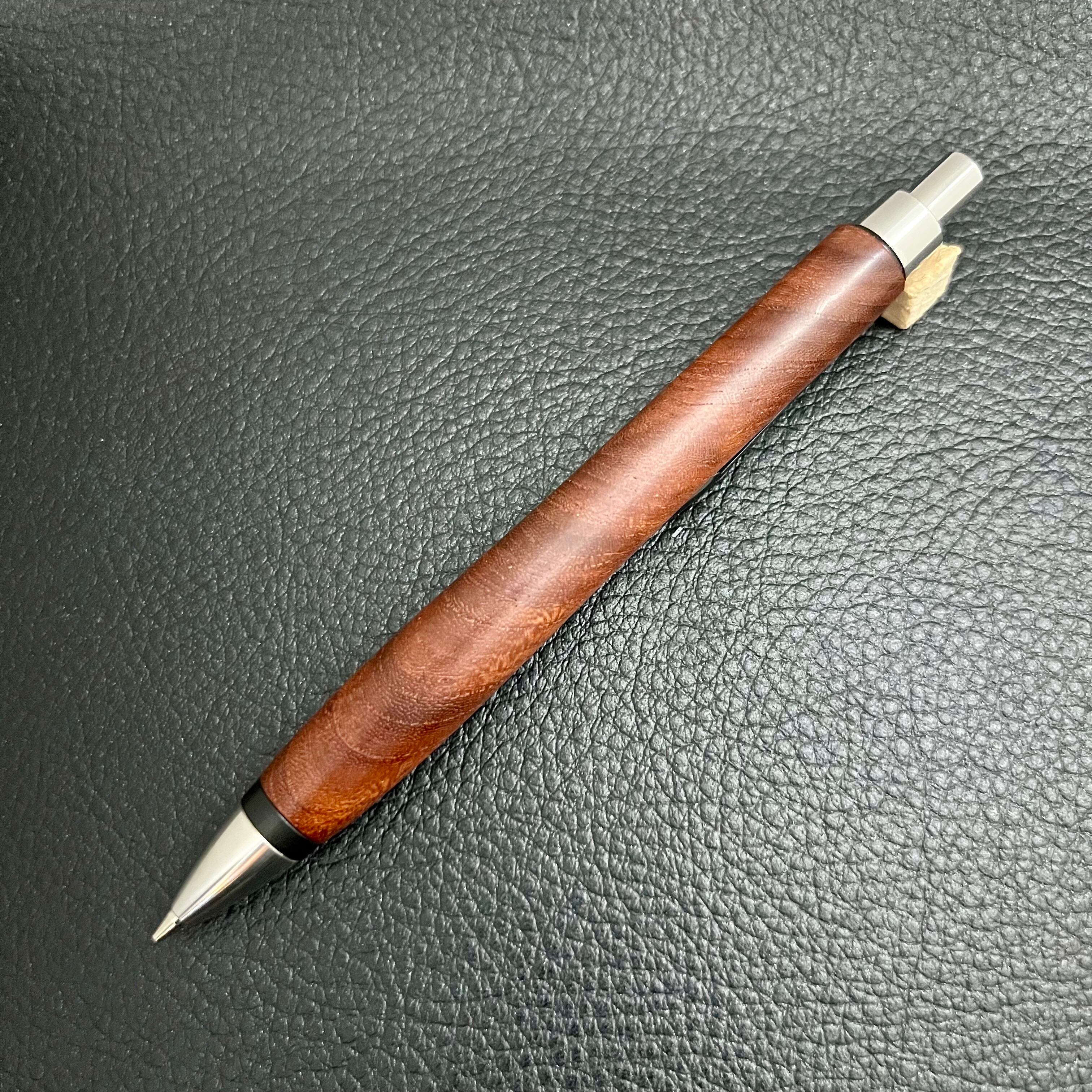 ペンシルは軸ブレが起こりにくい固定式口金を採用し、木の表情を最大限に楽しめる木軸の長さと、書き心地にこだわったバランスで金具を設計してあります。