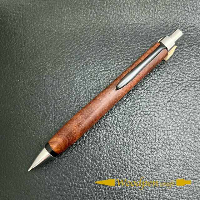 ペンに使った木は、推定50年以上も前に雷に打たれた大枝を強剪定したもので、巨木と雷の影響で普通の欅と色合いが全く違い濃いです。