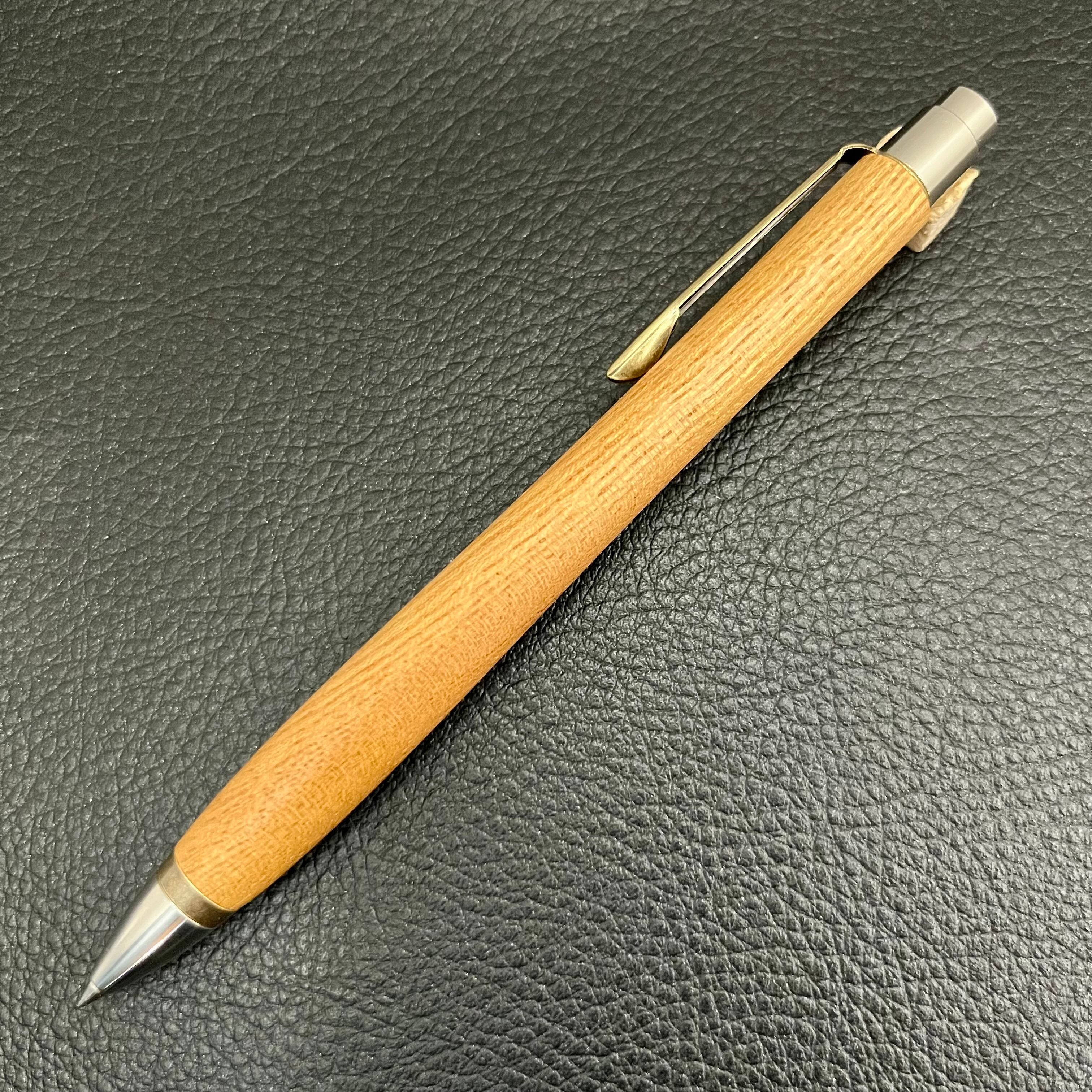 ボールペンのノックシステムは、ドイツ最高のクリックメカニズムを採用してあります。このメカニズムはユニークな機構のため、クリックしたときのカチカチ音が静かで、どんな場所でも気兼ねなく使うことができます。滑らかに動くこのプッシュ感覚を一度味わうと他には戻れなくなってしまうほどの魅力があります。 100分の1単位の加工精度で削り出されたペン先は、軸ブレも全くありません。