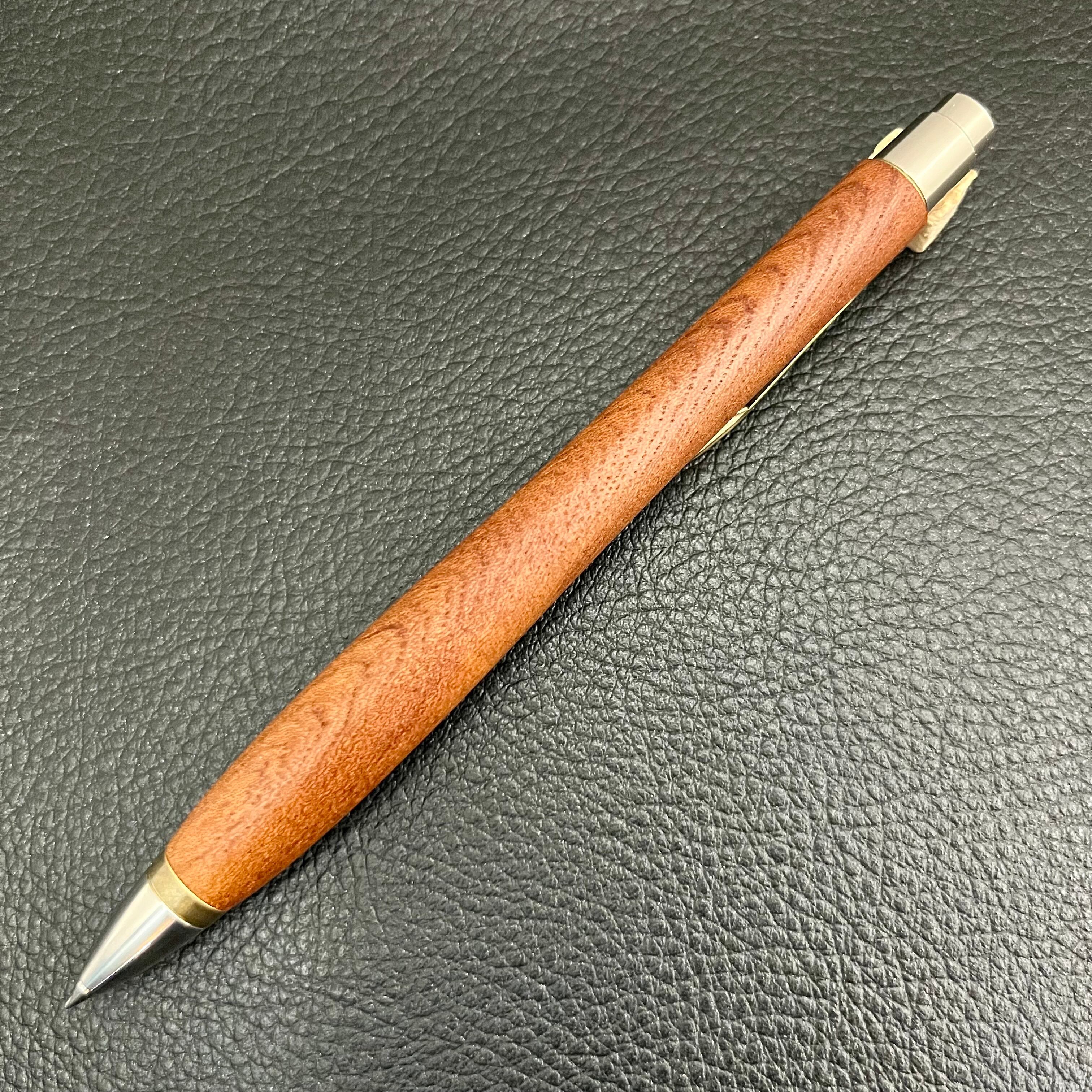 ボールペンのノックシステムは、ドイツ最高のクリックメカニズムを採用してあります。このメカニズムはユニークな機構のため、クリックしたときのカチカチ音が静かで、どんな場所でも気兼ねなく使うことができます。滑らかに動くこのプッシュ感覚を一度味わうと他には戻れなくなってしまうほどの魅力があります。 100分の1単位の加工精度で削り出されたペン先は、軸ブレも全くありません。