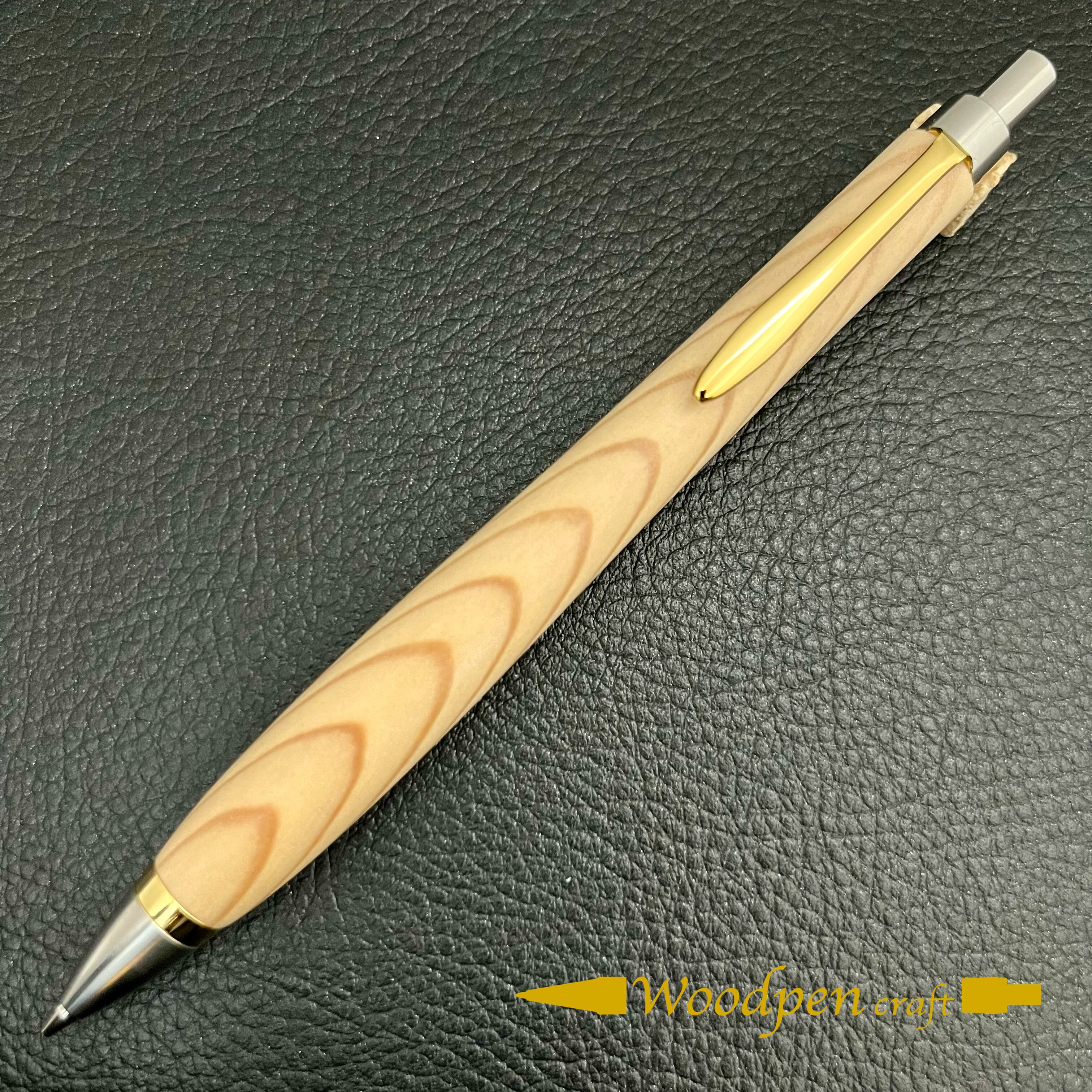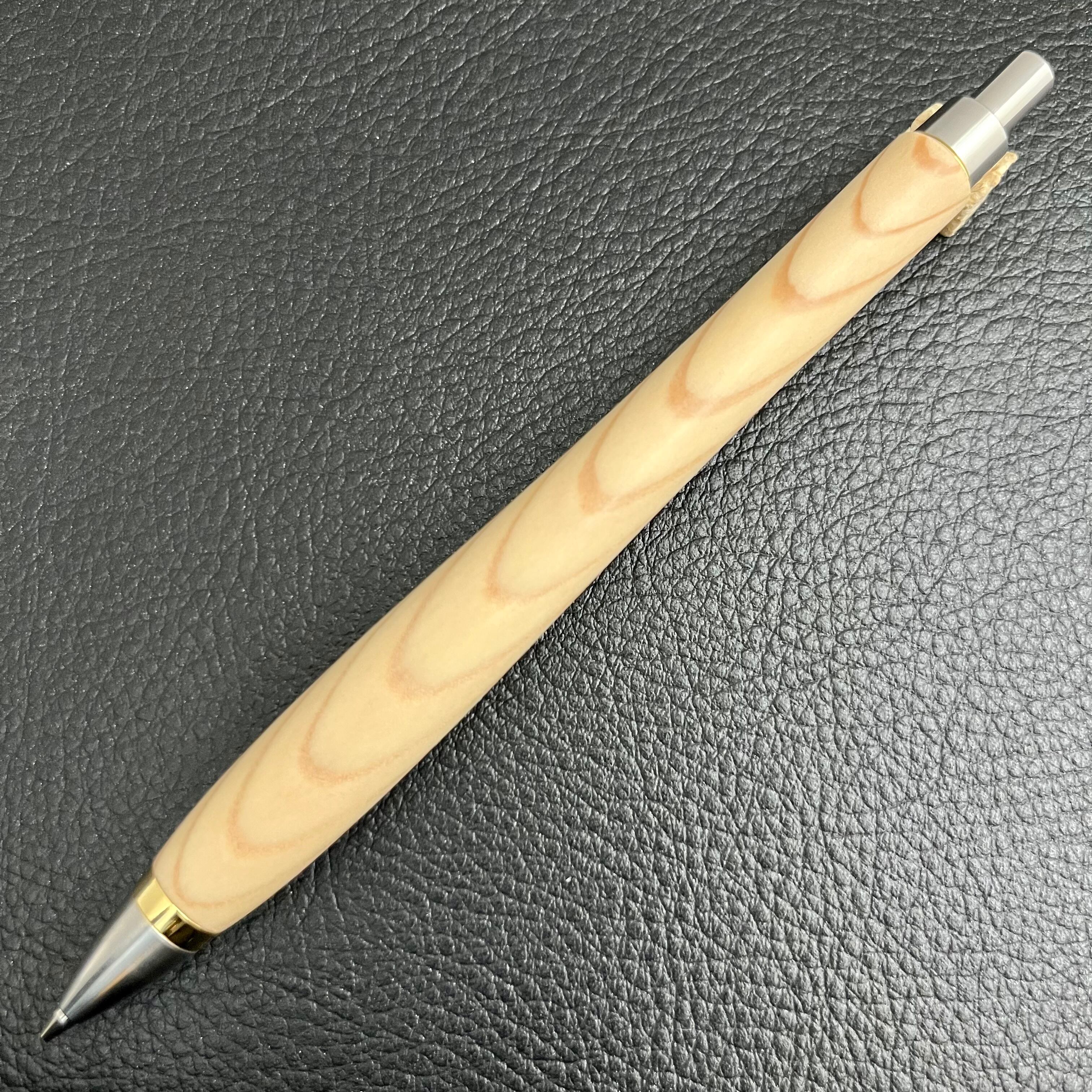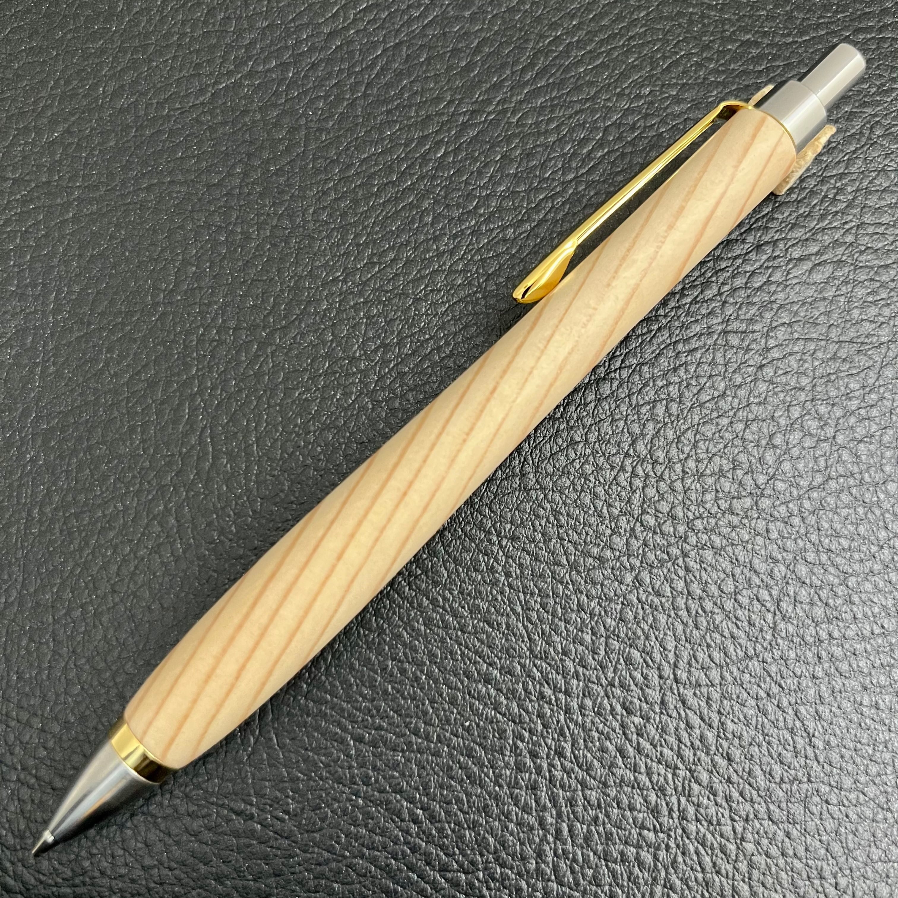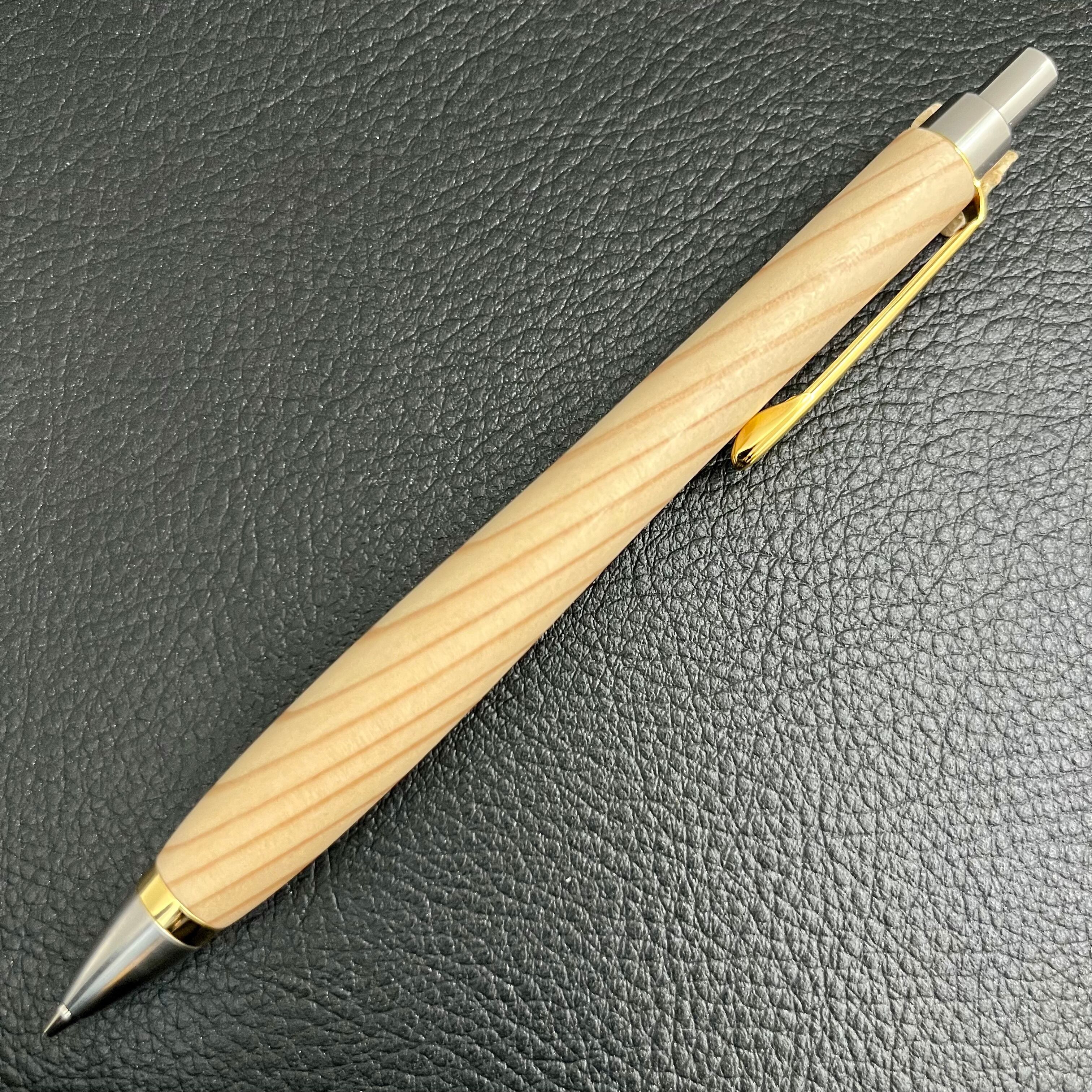 ペンシルは軸ブレが起こりにくい固定式口金を採用し、木の表情を最大限に楽しめる木軸の長さと、書き心地にこだわったバランスで金具を設計してあります。