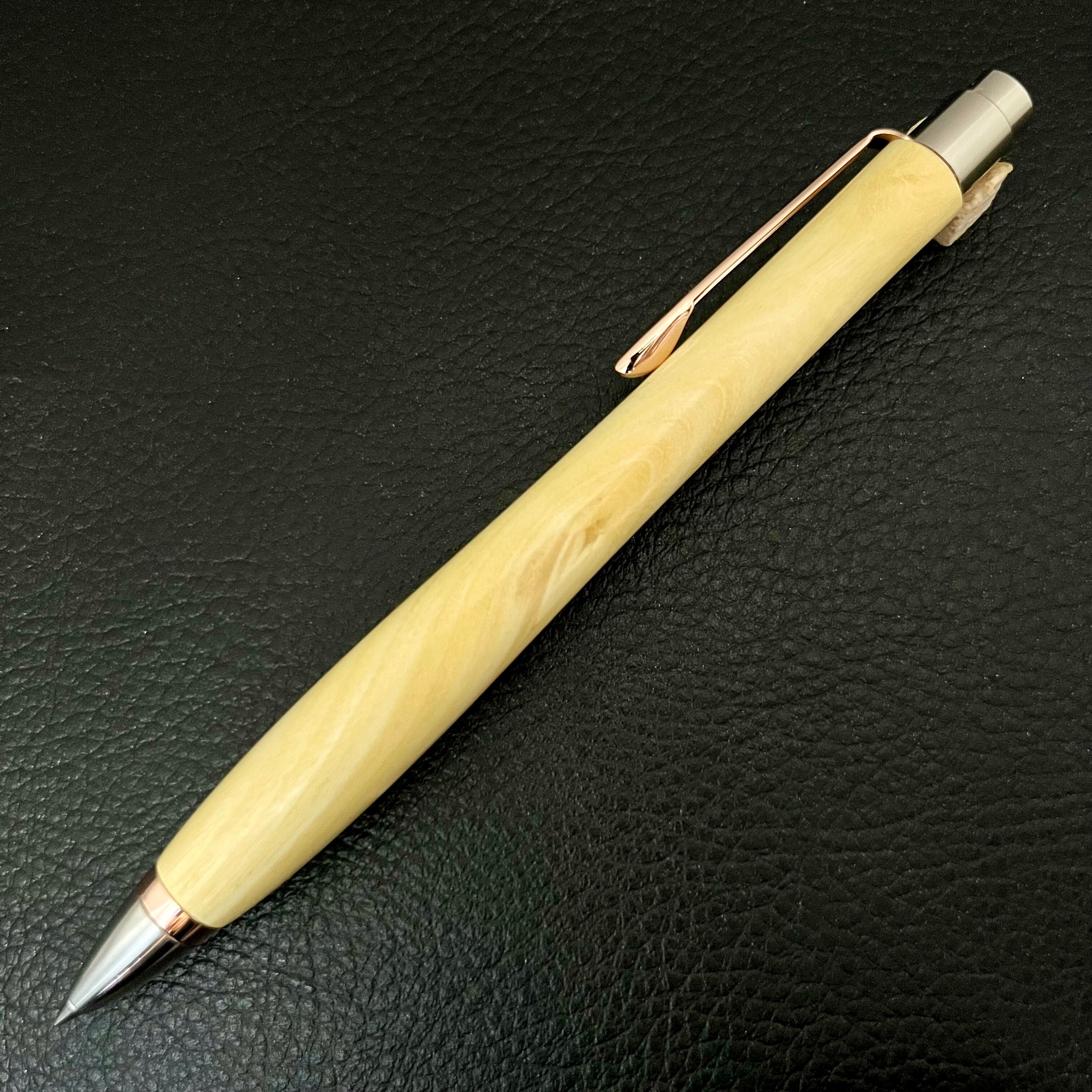 ボールペンのノックシステムは、ドイツ最高のクリックメカニズムを採用してあります。このメカニズムはユニークな機構のため、クリックしたときのカチカチ音が静かで、どんな場所でも気兼ねなく使うことができます。滑らかに動くこのプッシュ感覚を一度味わうと他には戻れなくなってしまうほどの魅力があります。 100分の1単位の加工精度で削り出されたペン先は、軸ブレも全くありません。
