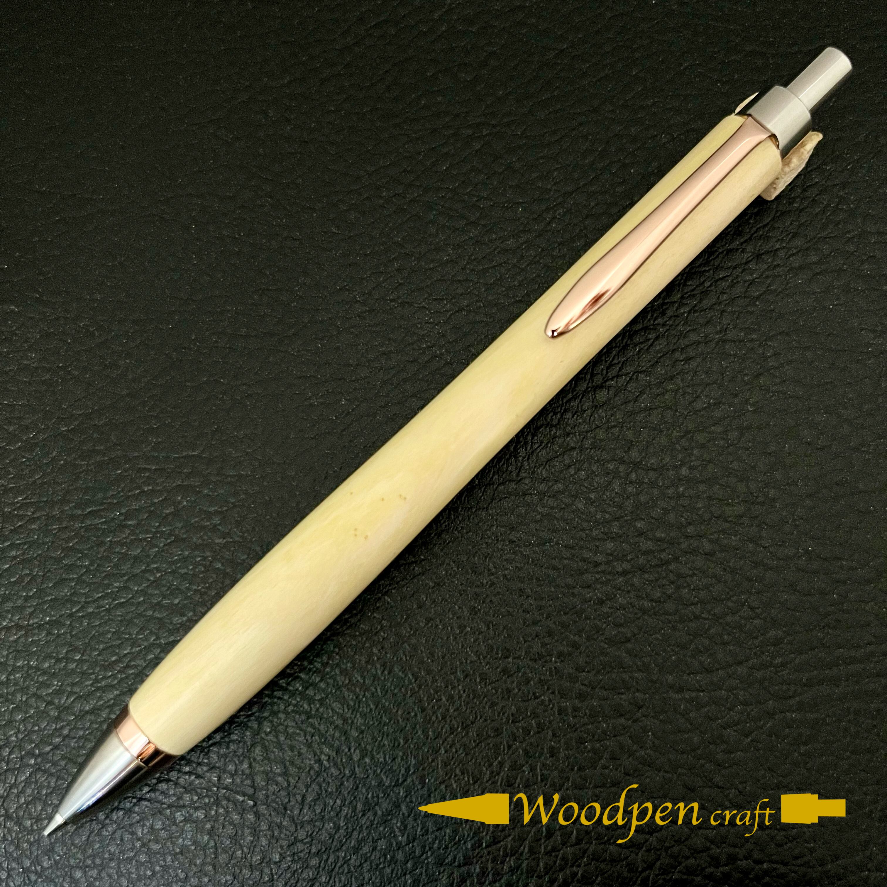 ペンシルは軸ブレが起こりにくい固定式口金を採用し、木の表情を最大限に楽しめる木軸の長さと、書き心地にこだわったバランスで金具を設計してあります。