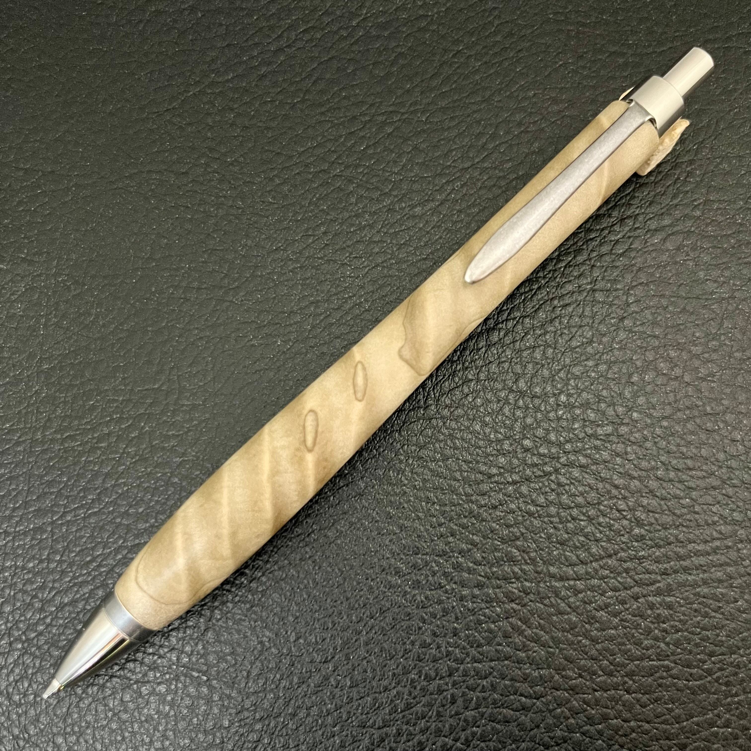 ペンシルは軸ブレが起こりにくい固定式口金を採用し、木の表情を最大限に楽しめる木軸の長さと、書き心地にこだわったバランスで金具を設計してあります。