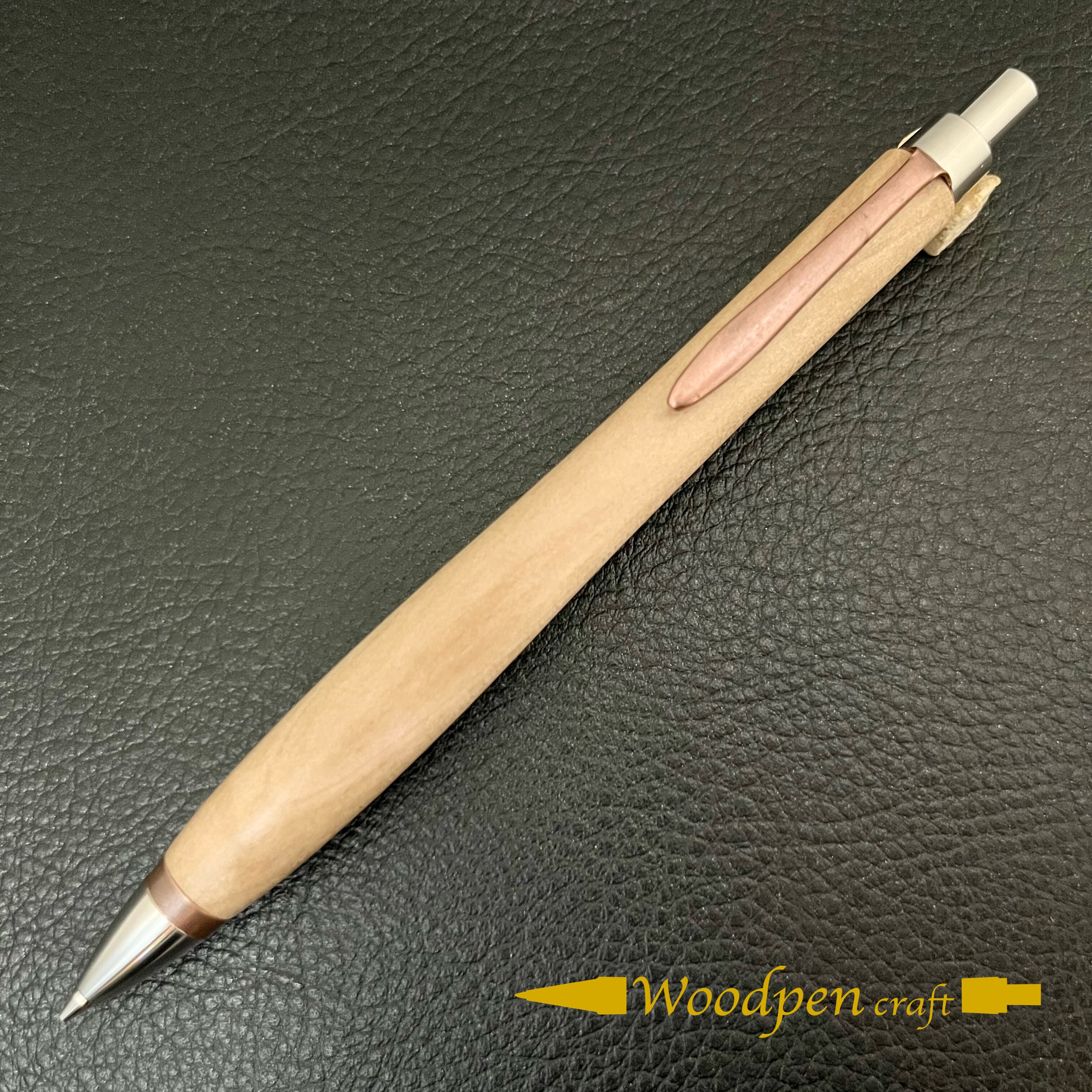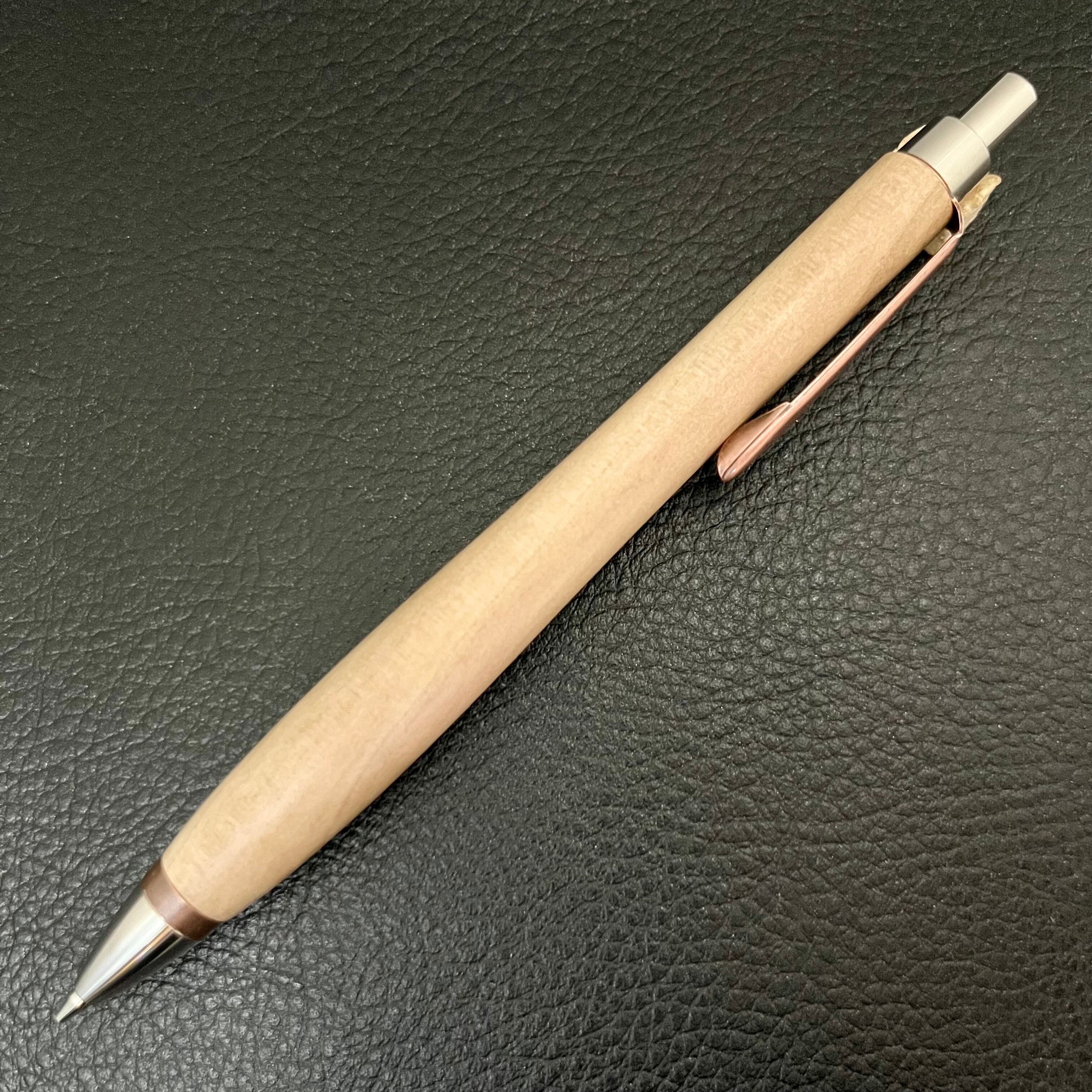 ペンシルは軸ブレが起こりにくい固定式口金を採用し、木の表情を最大限に楽しめる木軸の長さと、書き心地にこだわったバランスで金具を設計してあります。
