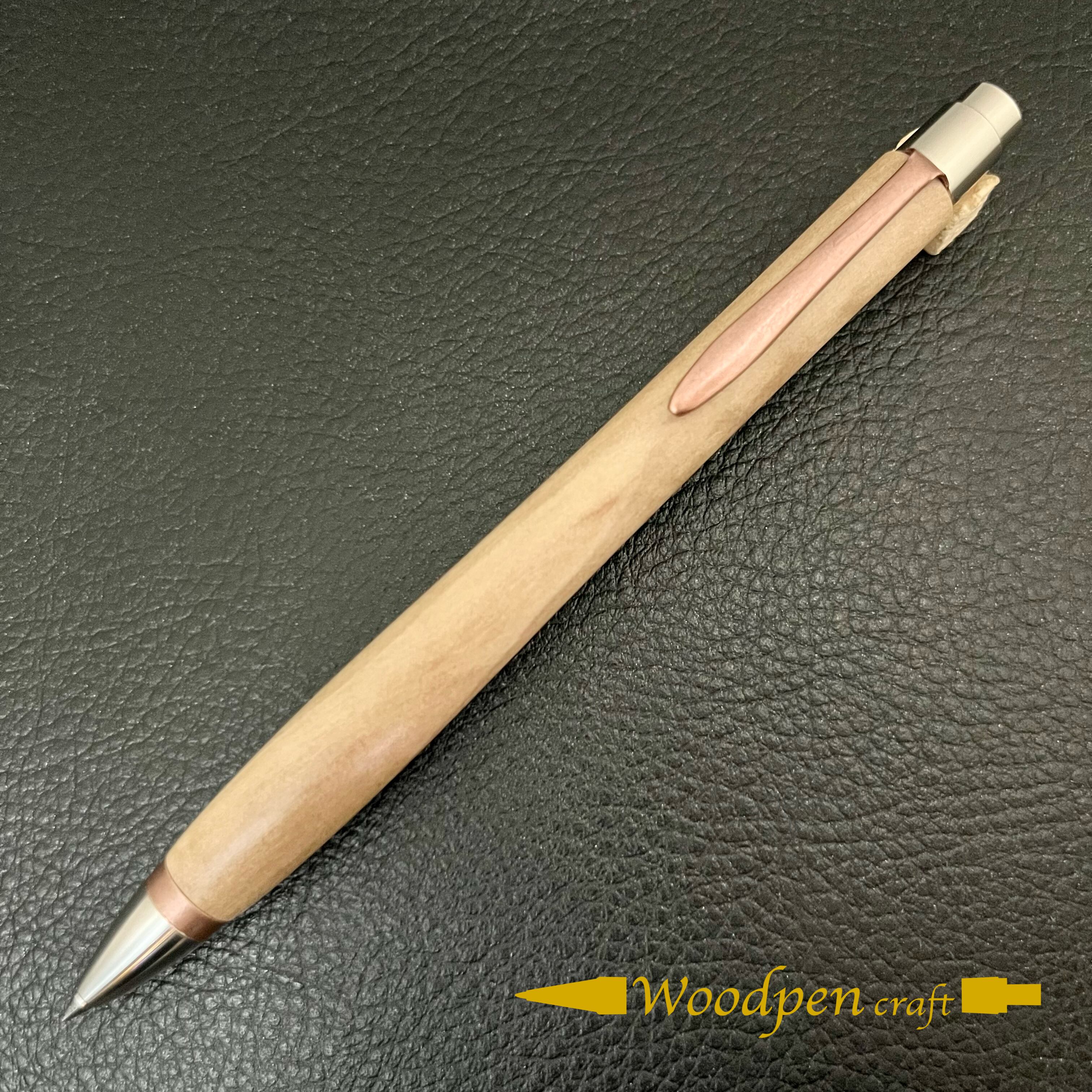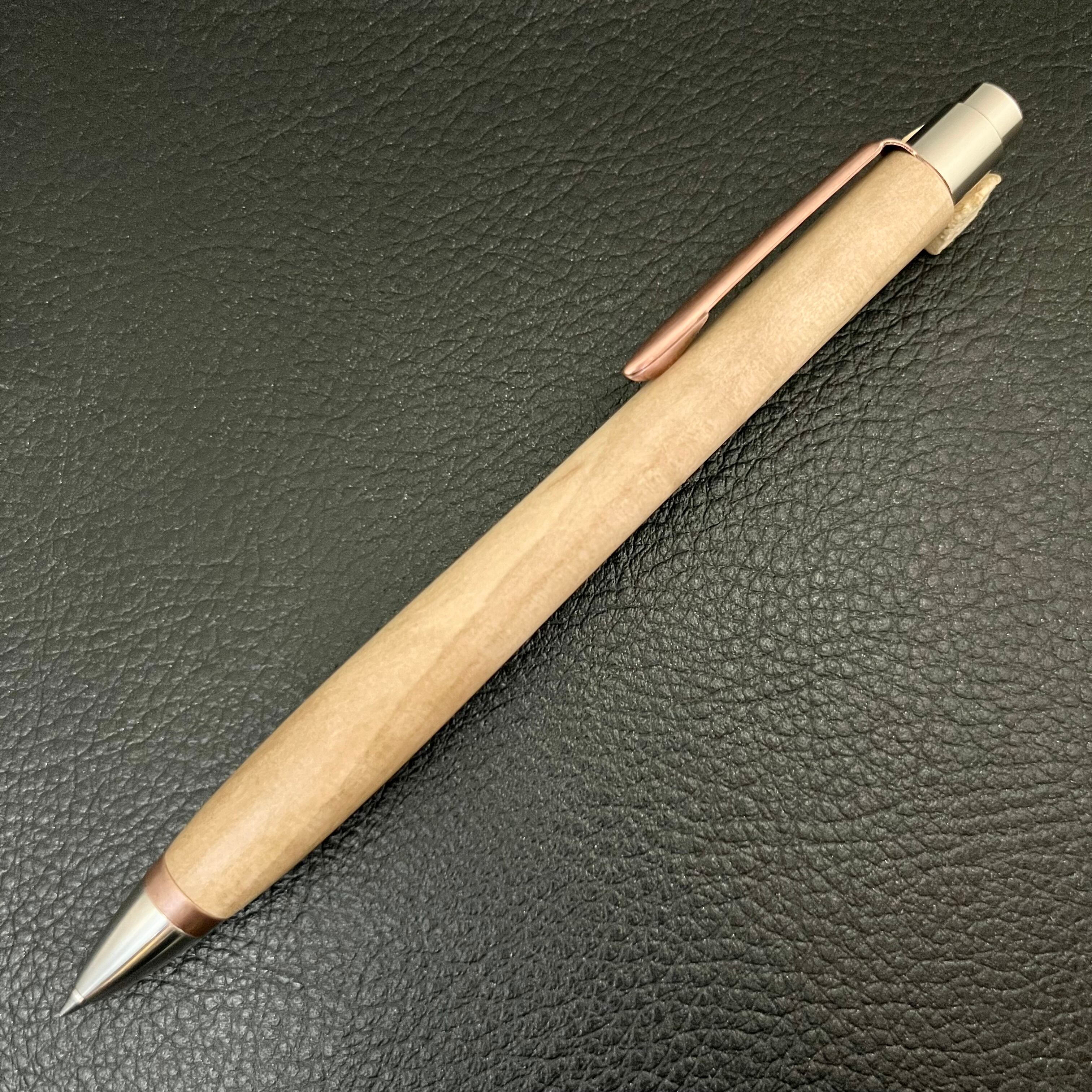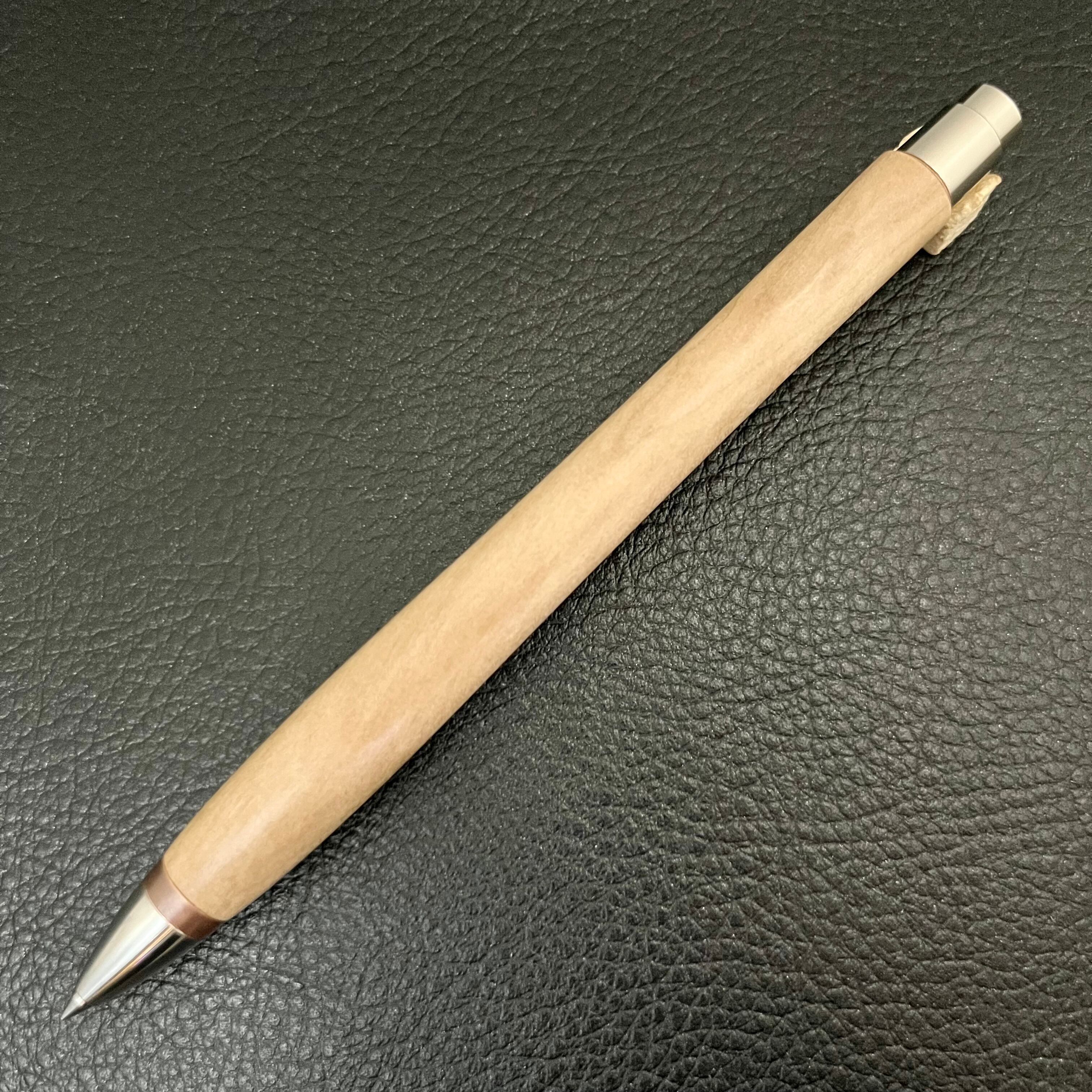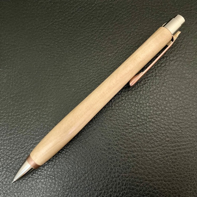 ボールペンのノックシステムは、ドイツ最高のクリックメカニズムを採用してあります。このメカニズムはユニークな機構のため、クリックしたときのカチカチ音が静かで、どんな場所でも気兼ねなく使うことができます。滑らかに動くこのプッシュ感覚を一度味わうと他には戻れなくなってしまうほどの魅力があります。 100分の1単位の加工精度で削り出されたペン先は、軸ブレも全くありません。