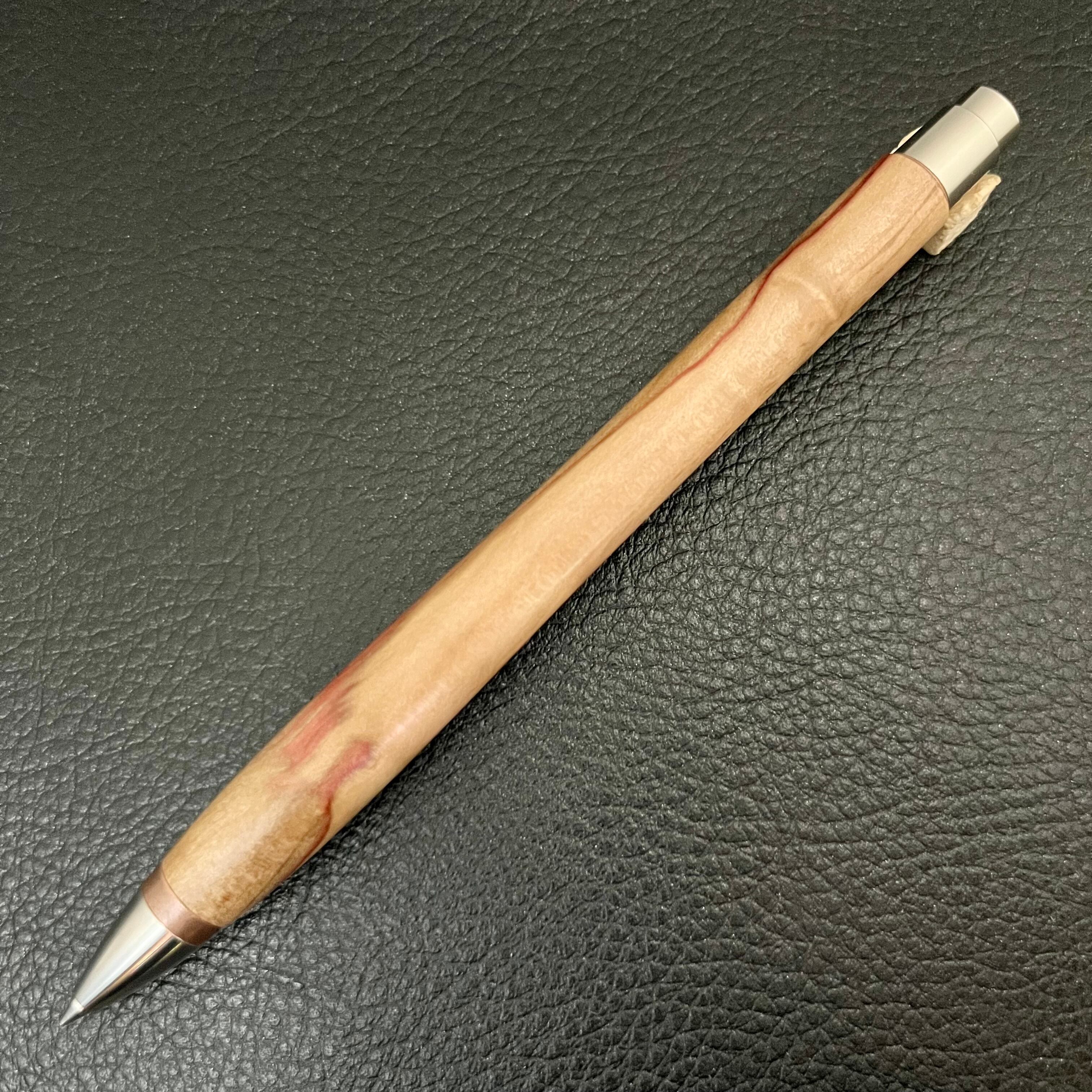 ボールペンのノックシステムは、ドイツ最高のクリックメカニズムを採用してあります。このメカニズムはユニークな機構のため、クリックしたときのカチカチ音が静かで、どんな場所でも気兼ねなく使うことができます。滑らかに動くこのプッシュ感覚を一度味わうと他には戻れなくなってしまうほどの魅力があります。 100分の1単位の加工精度で削り出されたペン先は、軸ブレも全くありません。