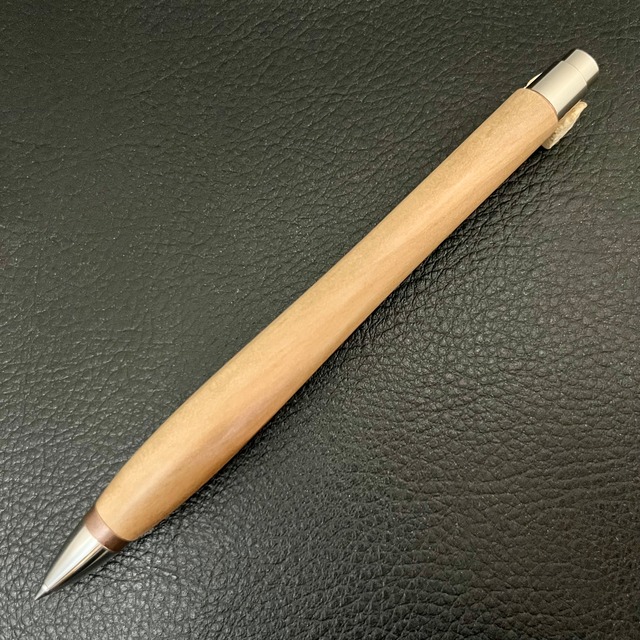 ボールペンのノックシステムは、ドイツ最高のクリックメカニズムを採用してあります。このメカニズムはユニークな機構のため、クリックしたときのカチカチ音が静かで、どんな場所でも気兼ねなく使うことができます。滑らかに動くこのプッシュ感覚を一度味わうと他には戻れなくなってしまうほどの魅力があります。 100分の1単位の加工精度で削り出されたペン先は、軸ブレも全くありません。