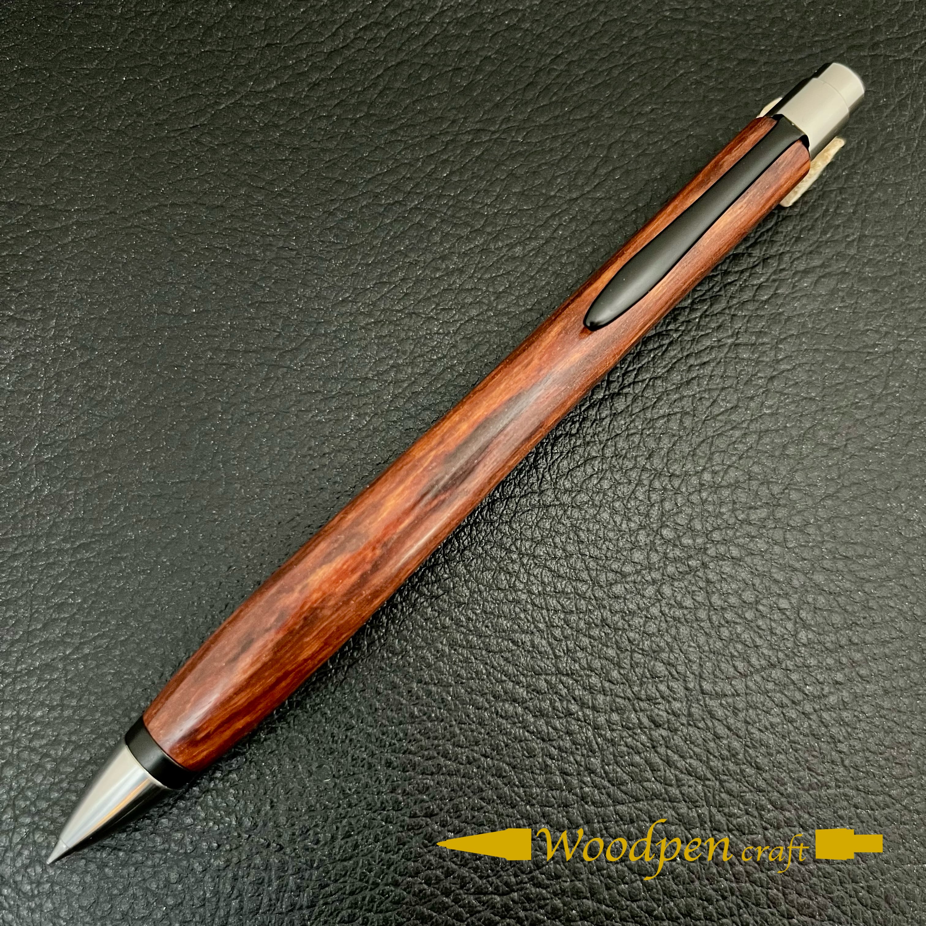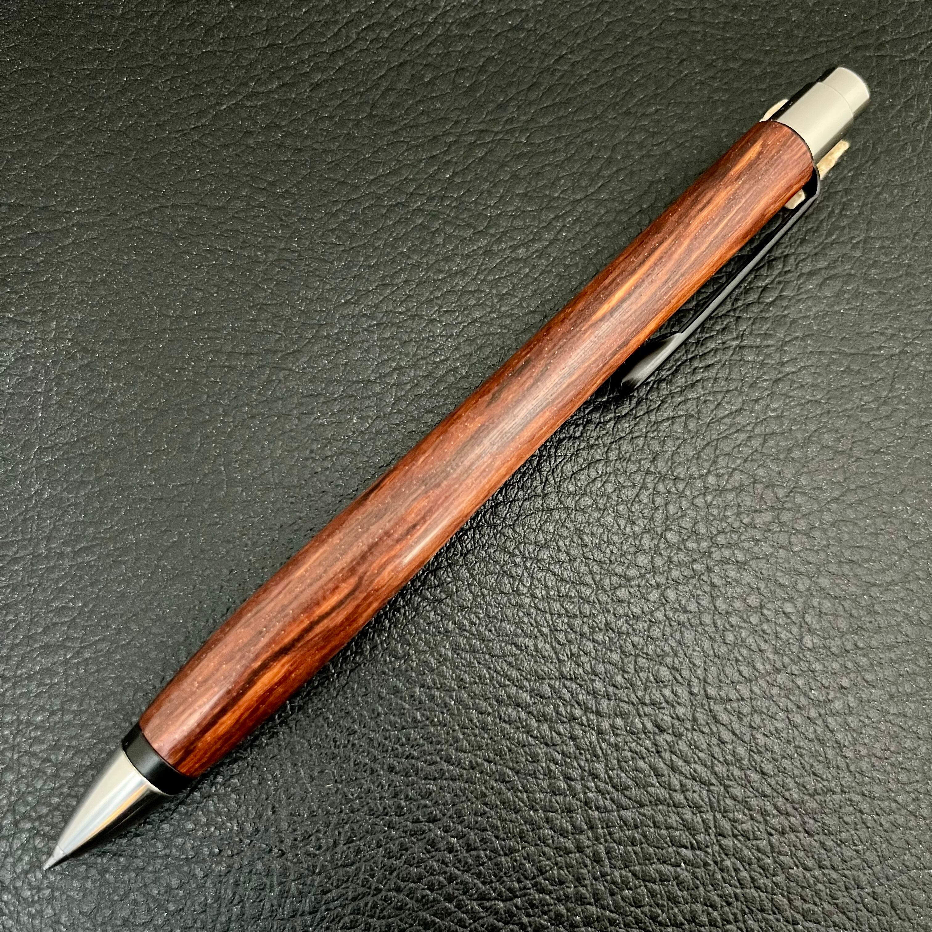 ボールペンのノックシステムは、ドイツ最高のクリックメカニズムを採用してあります。このメカニズムはユニークな機構のため、クリックしたときのカチカチ音が静かで、どんな場所でも気兼ねなく使うことができます。滑らかに動くこのプッシュ感覚を一度味わうと他には戻れなくなってしまうほどの魅力があります。 100分の1単位の加工精度で削り出されたペン先は、軸ブレも全くありません。