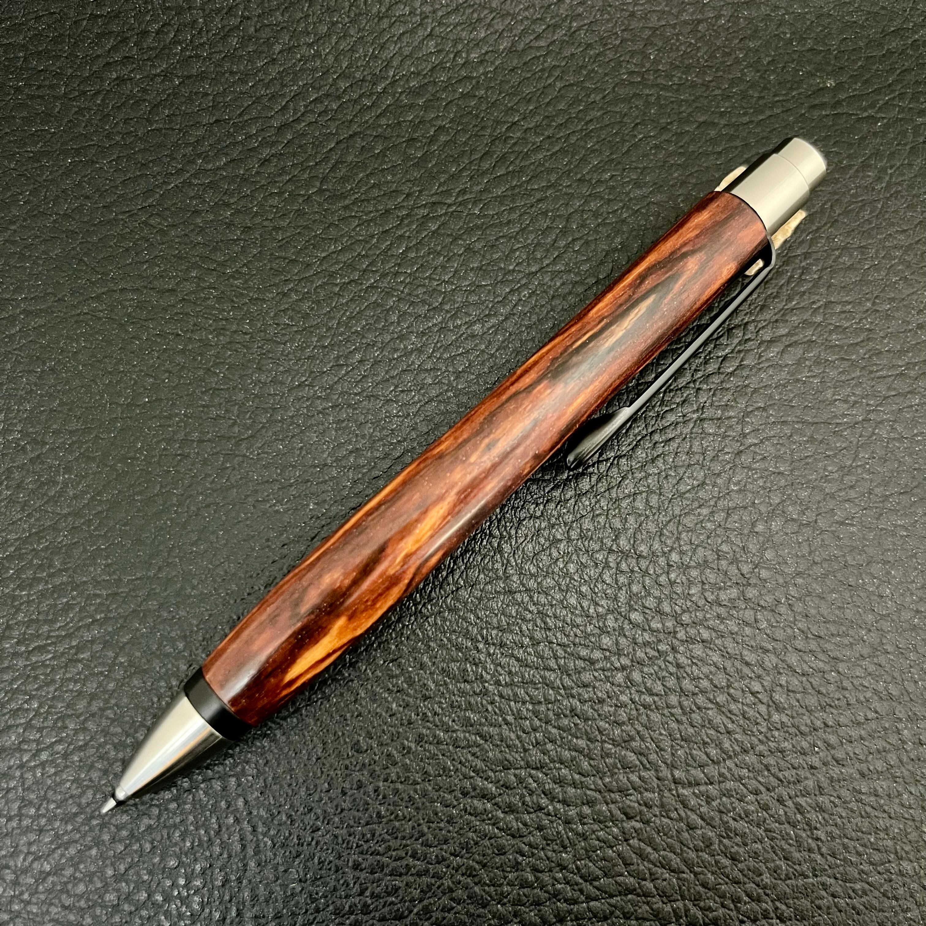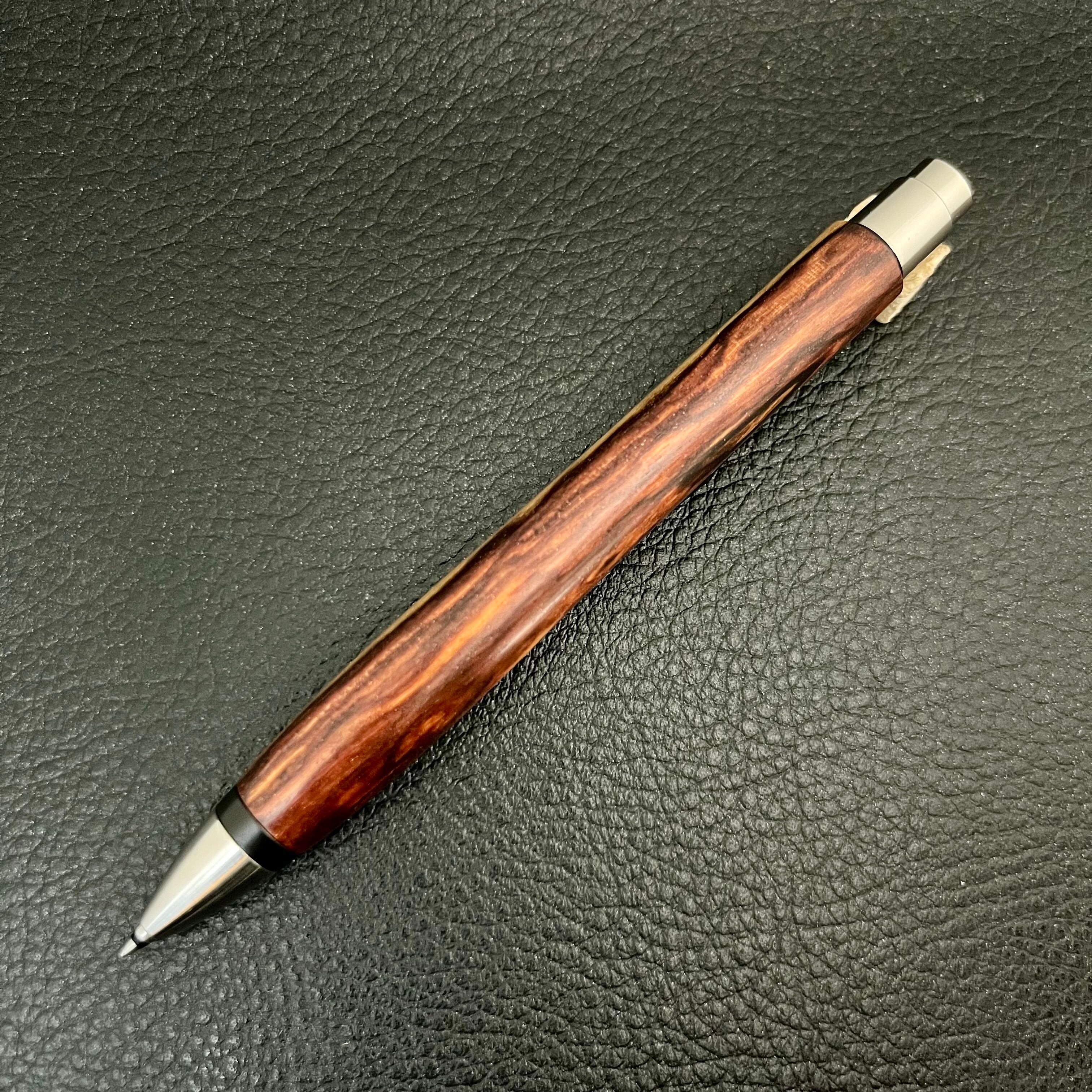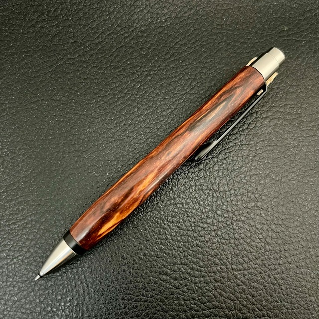 ボールペンのノックシステムは、ドイツ最高のクリックメカニズムを採用してあります。このメカニズムはユニークな機構のため、クリックしたときのカチカチ音が静かで、どんな場所でも気兼ねなく使うことができます。滑らかに動くこのプッシュ感覚を一度味わうと他には戻れなくなってしまうほどの魅力があります。 高級ステンレス材を100分の1単位の加工精度で削り出された口金により芯ブレも全くありません。内部のアルミを使ったリフィルアダプターもオリジナルです。