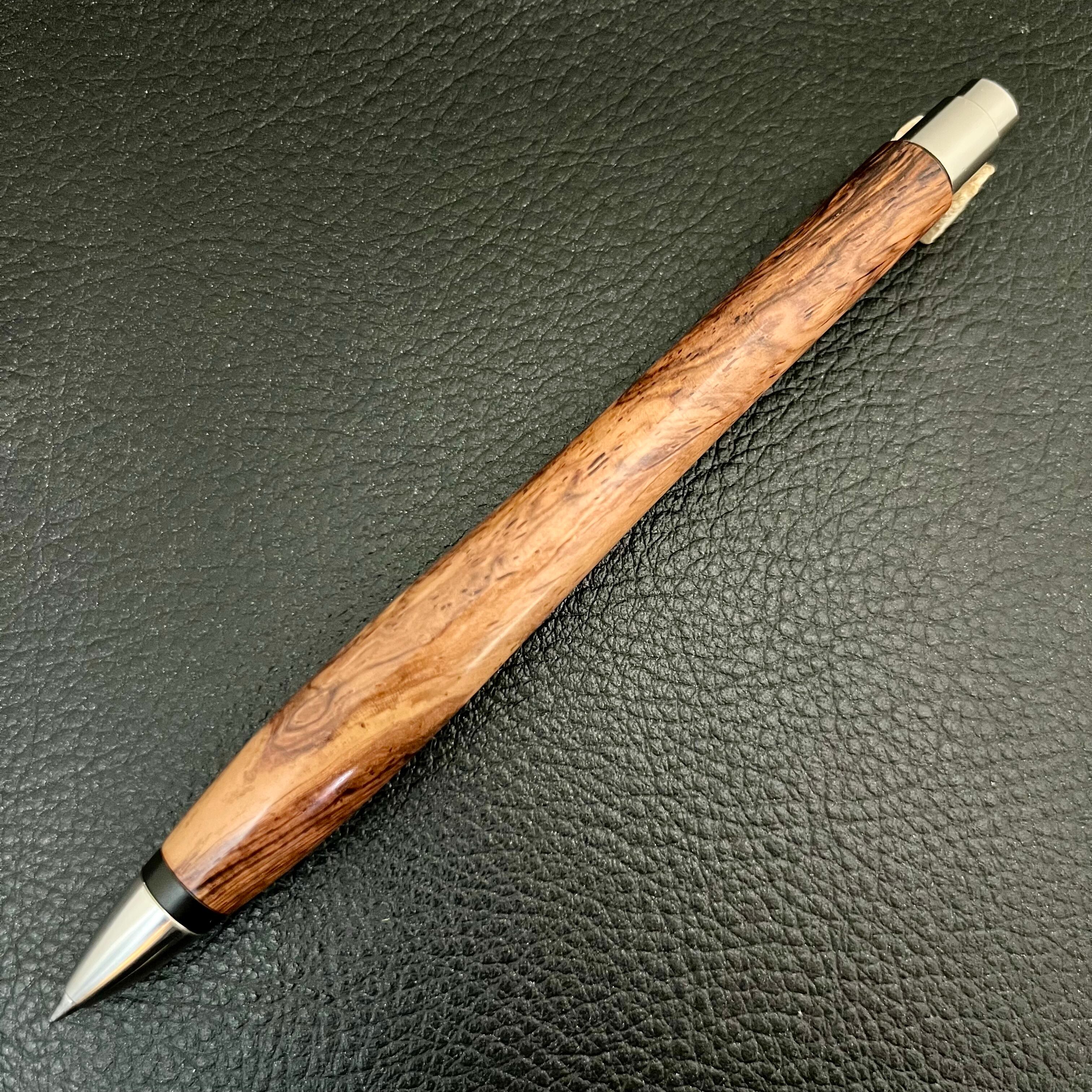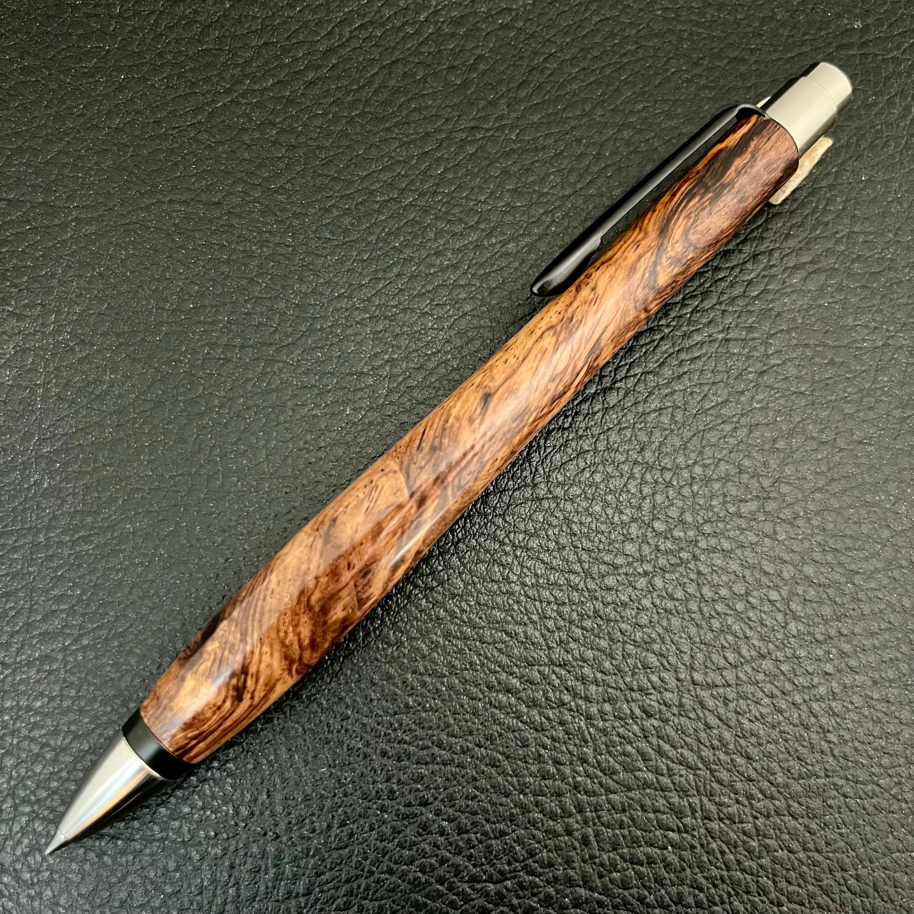ボールペンのノックシステムは、ドイツ最高のクリックメカニズムを採用してあります。このメカニズムはユニークな機構のため、クリックしたときのカチカチ音が静かで、どんな場所でも気兼ねなく使うことができます。滑らかに動くこのプッシュ感覚を一度味わうと他には戻れなくなってしまうほどの魅力があります。 100分の1単位の加工精度で削り出されたペン先は、軸ブレも全くありません。