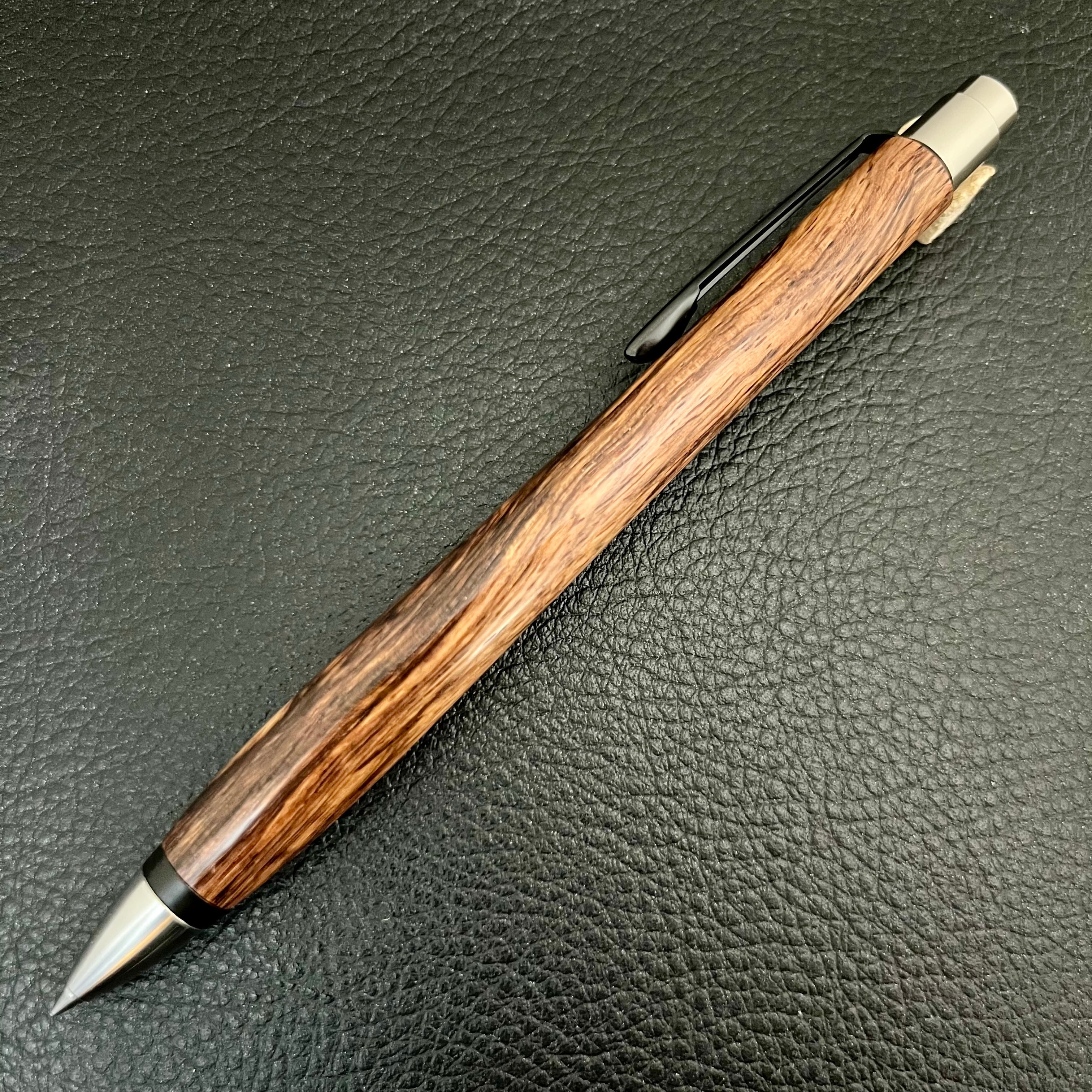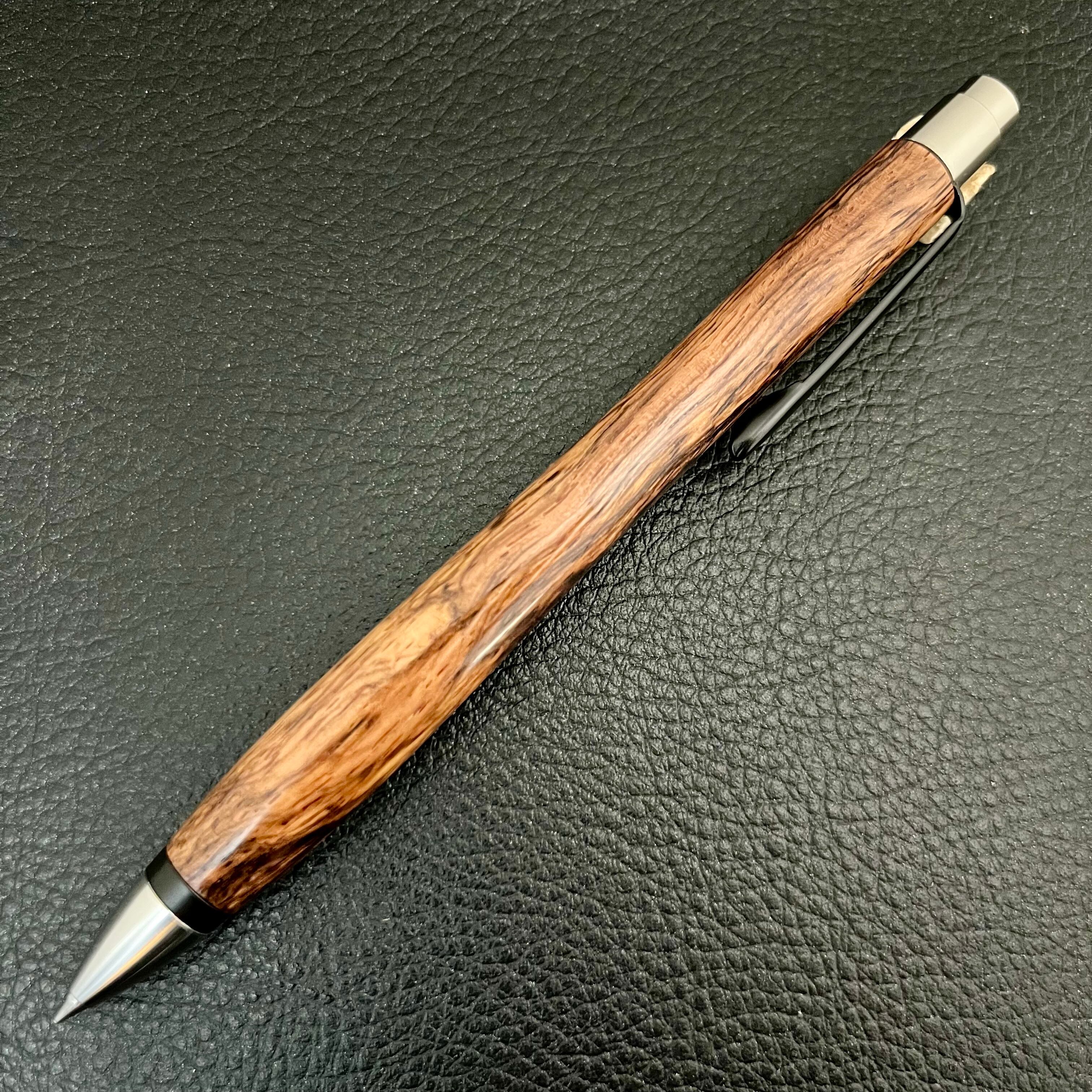 ボールペンのノックシステムは、ドイツ最高のクリックメカニズムを採用してあります。このメカニズムはユニークな機構のため、クリックしたときのカチカチ音が静かで、どんな場所でも気兼ねなく使うことができます。滑らかに動くこのプッシュ感覚を一度味わうと他には戻れなくなってしまうほどの魅力があります。 100分の1単位の加工精度で削り出されたペン先は、軸ブレも全くありません。