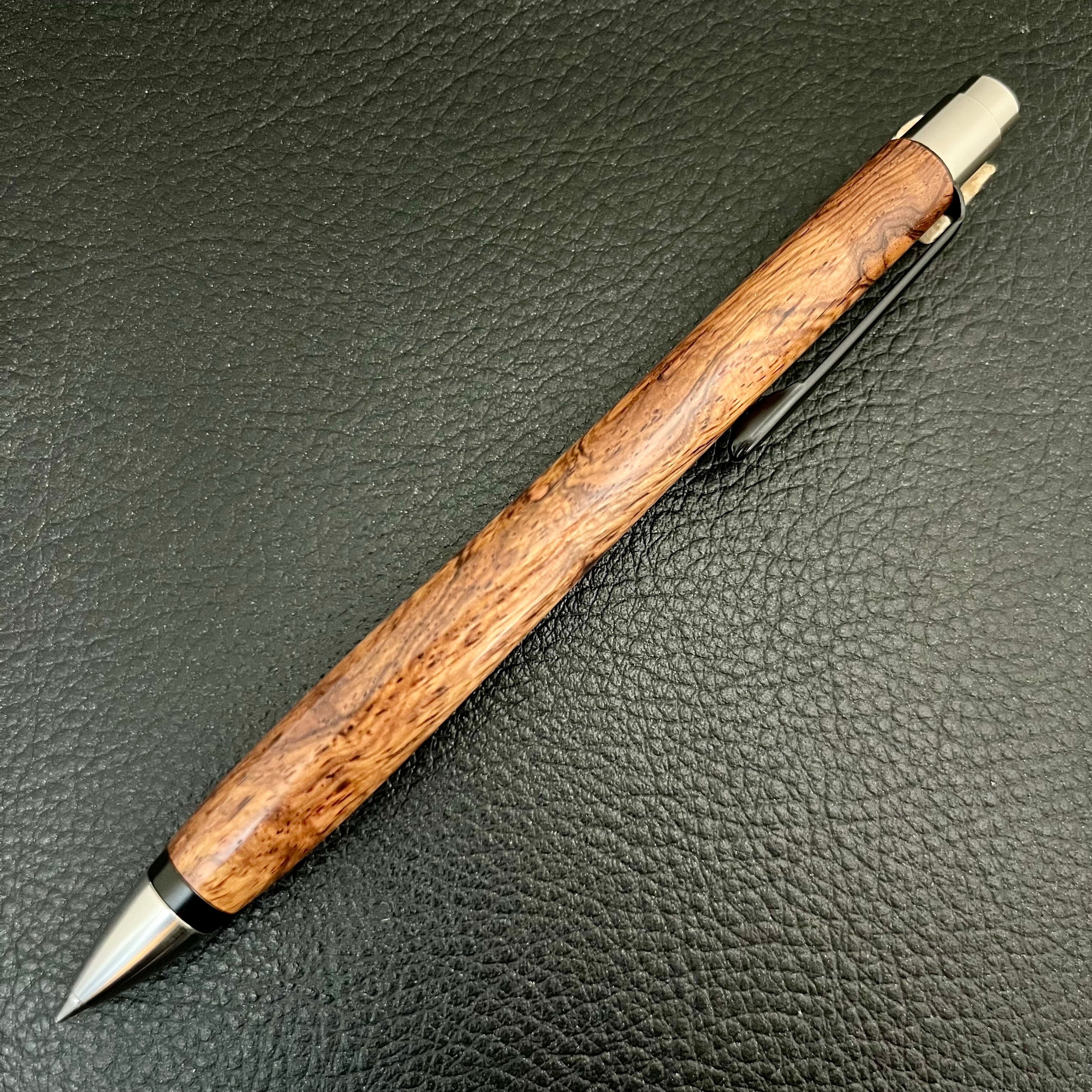 ボールペンのノックシステムは、ドイツ最高のクリックメカニズムを採用してあります。このメカニズムはユニークな機構のため、クリックしたときのカチカチ音が静かで、どんな場所でも気兼ねなく使うことができます。滑らかに動くこのプッシュ感覚を一度味わうと他には戻れなくなってしまうほどの魅力があります。 100分の1単位の加工精度で削り出されたペン先は、軸ブレも全くありません。