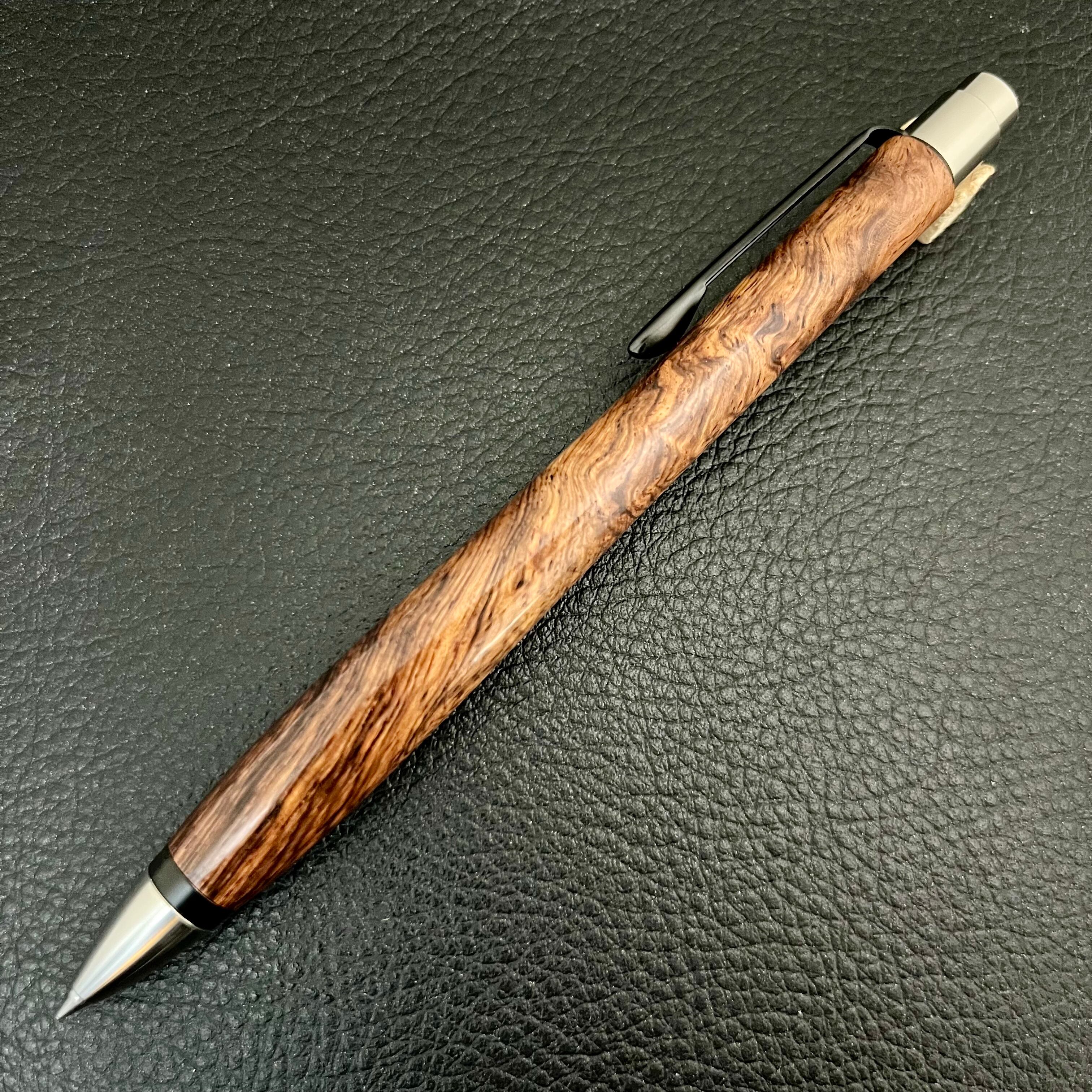 ボールペンのノックシステムは、ドイツ最高のクリックメカニズムを採用してあります。このメカニズムはユニークな機構のため、クリックしたときのカチカチ音が静かで、どんな場所でも気兼ねなく使うことができます。滑らかに動くこのプッシュ感覚を一度味わうと他には戻れなくなってしまうほどの魅力があります。 100分の1単位の加工精度で削り出されたペン先は、軸ブレも全くありません。