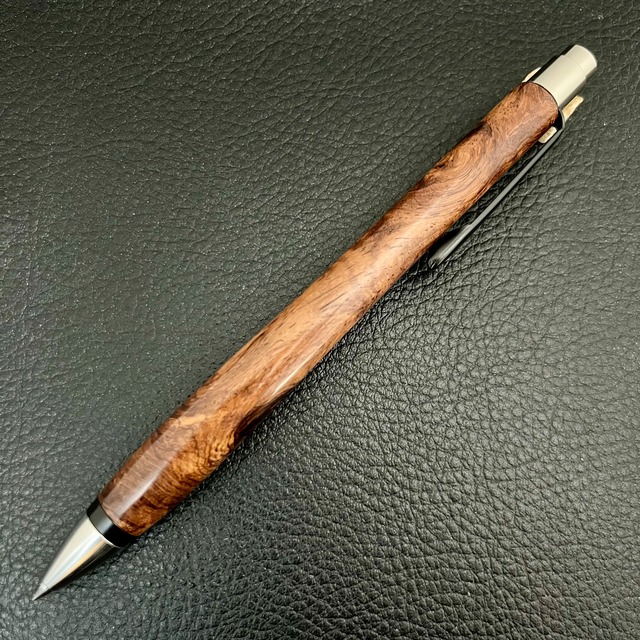 ボールペンのノックシステムは、ドイツ最高のクリックメカニズムを採用してあります。このメカニズムはユニークな機構のため、クリックしたときのカチカチ音が静かで、どんな場所でも気兼ねなく使うことができます。滑らかに動くこのプッシュ感覚を一度味わうと他には戻れなくなってしまうほどの魅力があります。 100分の1単位の加工精度で削り出されたペン先は、軸ブレも全くありません。
