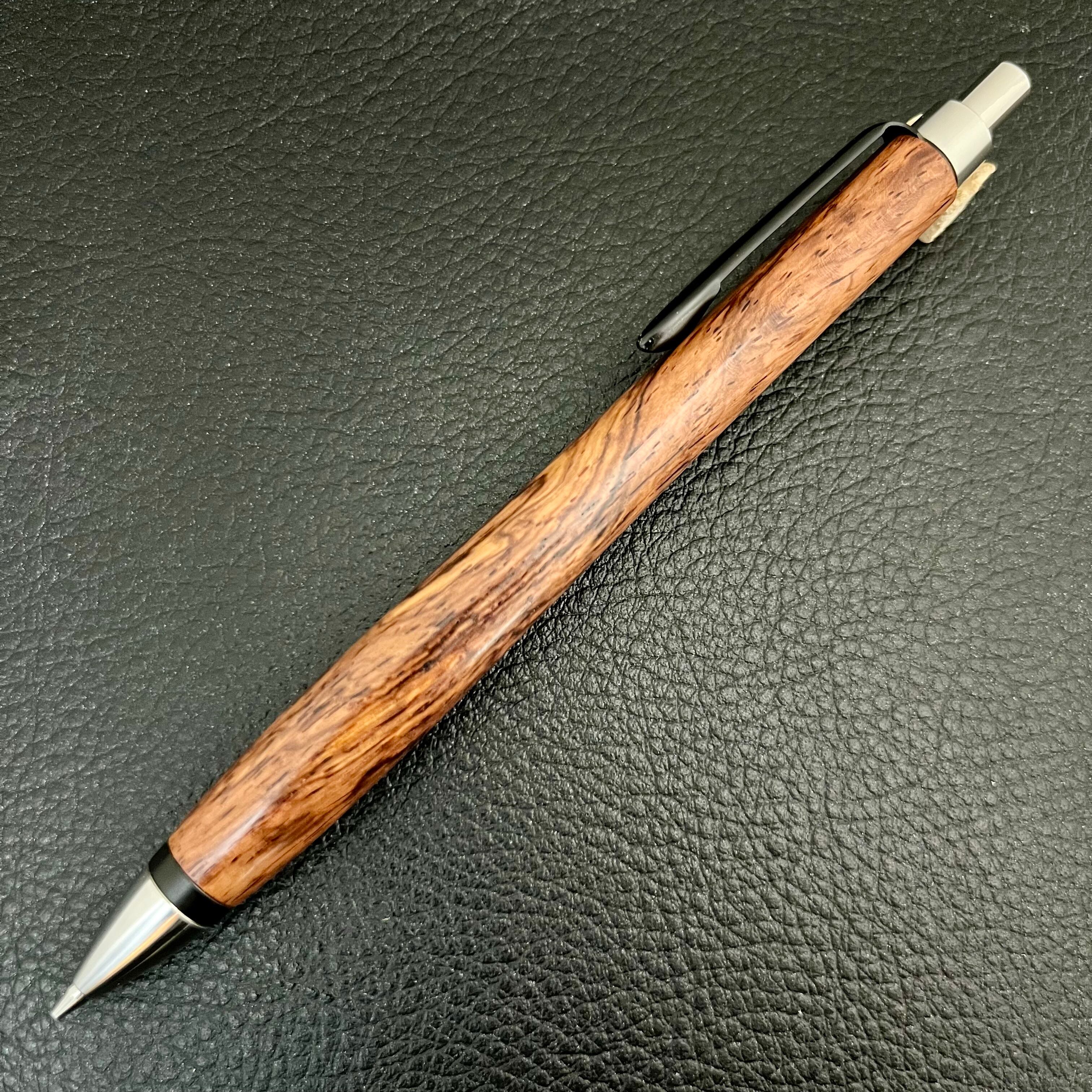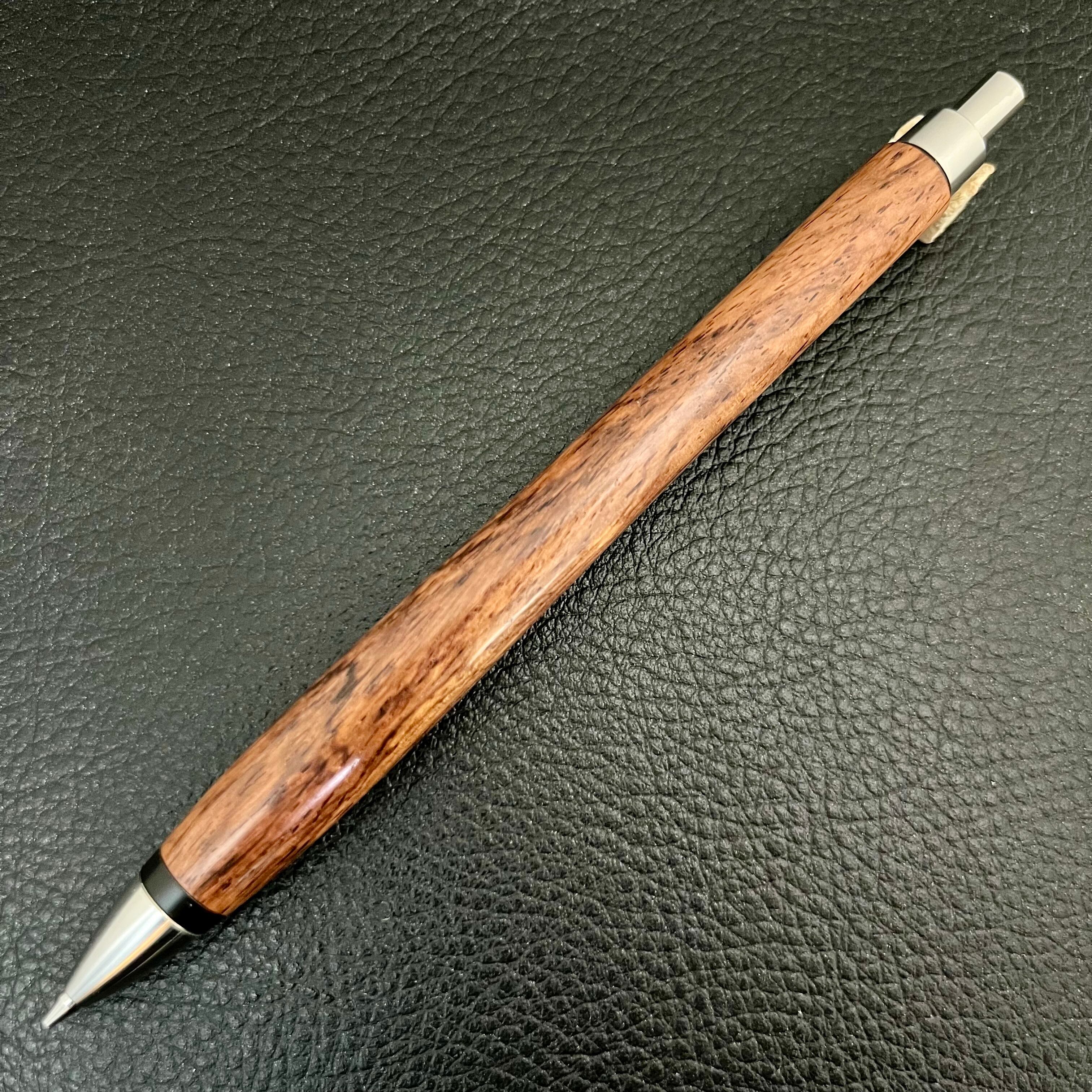 ペンシルは軸ブレが起こりにくい固定式口金を採用し、木の表情を最大限に楽しめる木軸の長さと、書き心地にこだわったバランスで金具を設計してあります。