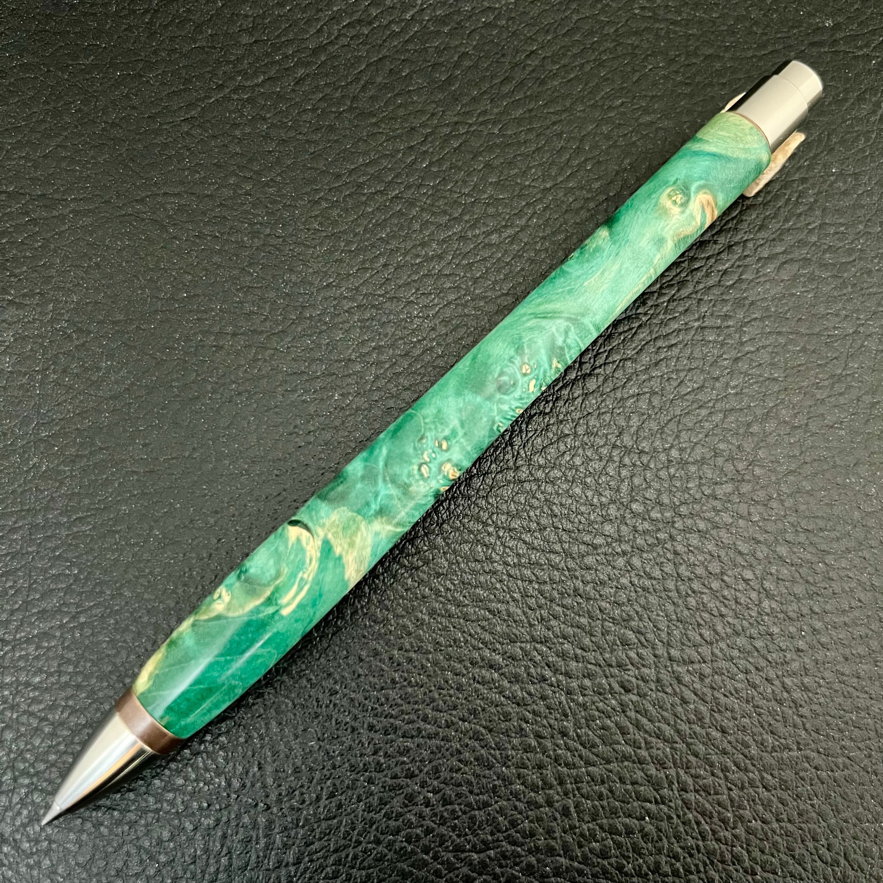 ボールペンのノックシステムは、ドイツ最高のクリックメカニズムを採用してあります。このメカニズムはユニークな機構のため、クリックしたときのカチカチ音が静かで、どんな場所でも気兼ねなく使うことができます。滑らかに動くこのプッシュ感覚を一度味わうと他には戻れなくなってしまうほどの魅力があります。 100分の1単位の加工精度で削り出されたペン先は、軸ブレも全くありません。