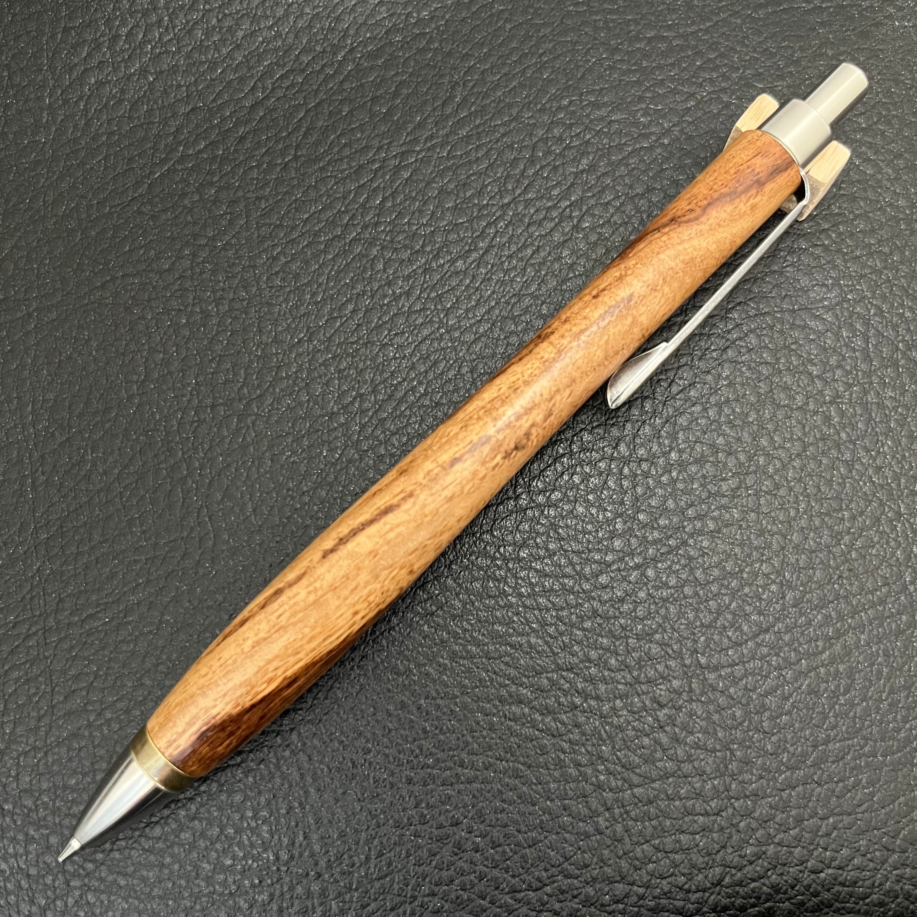 ペンシルは軸ブレが起こりにくい固定式口金を採用し、木の表情を最大限に楽しめる木軸の長さと、書き心地にこだわったバランスで金具を設計してあります。
