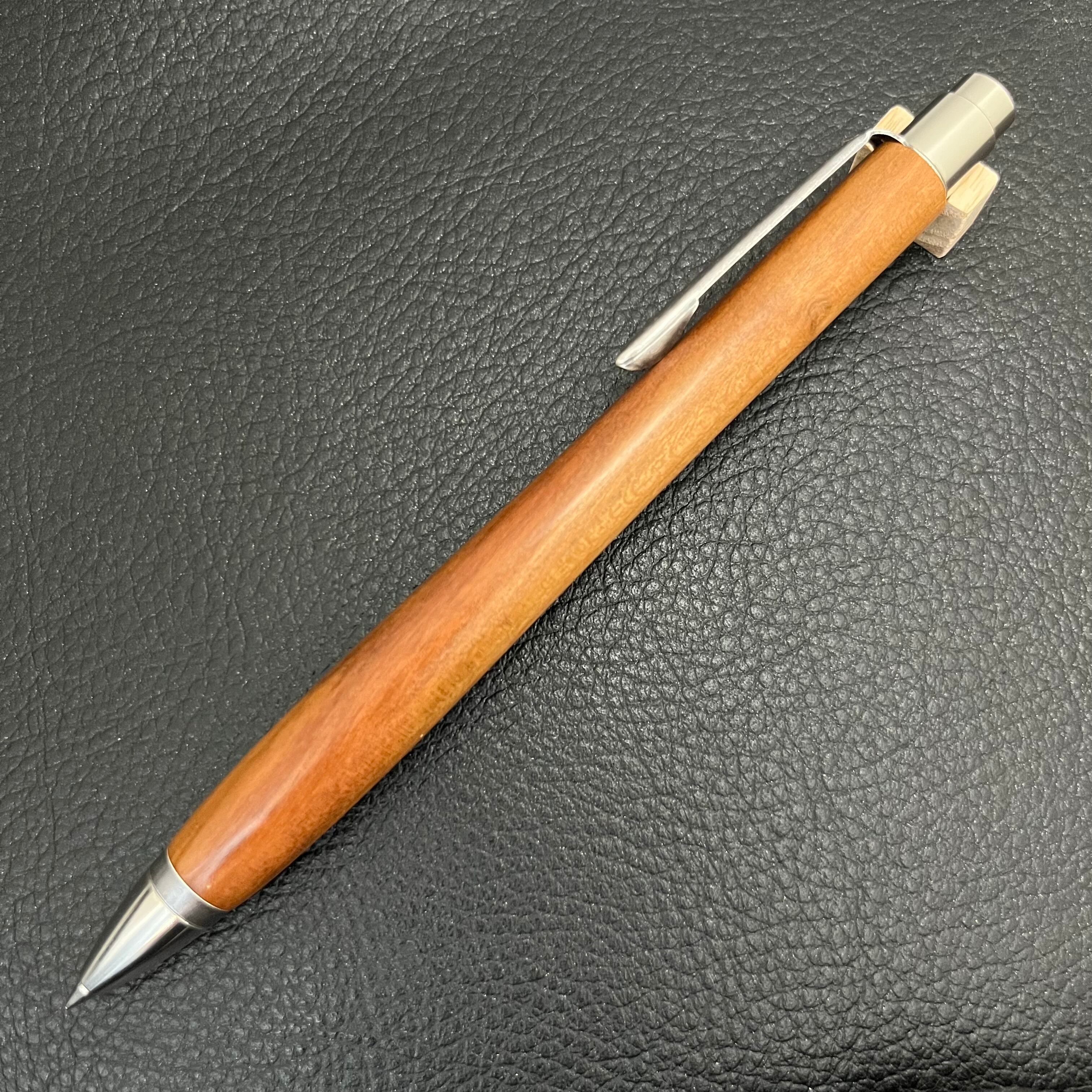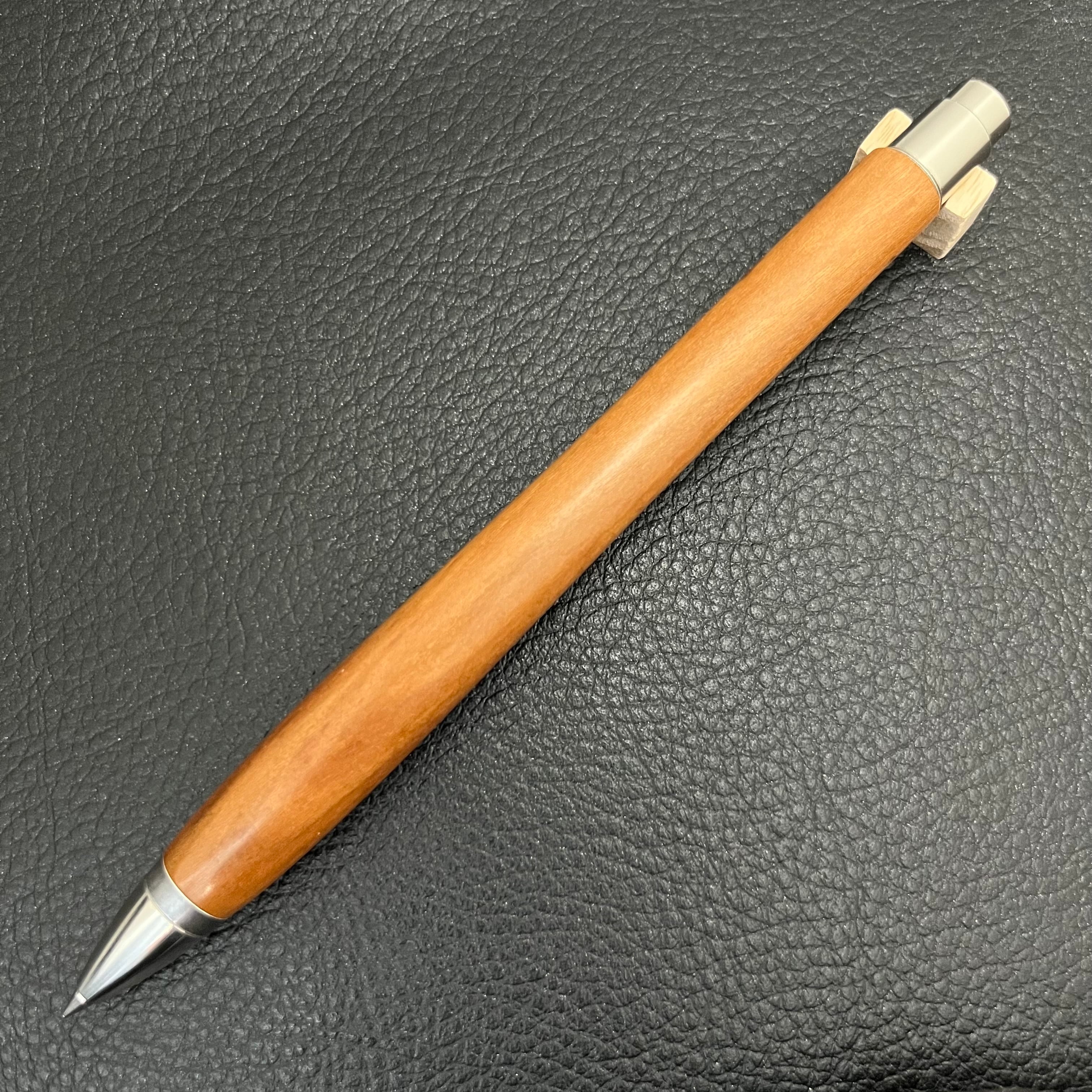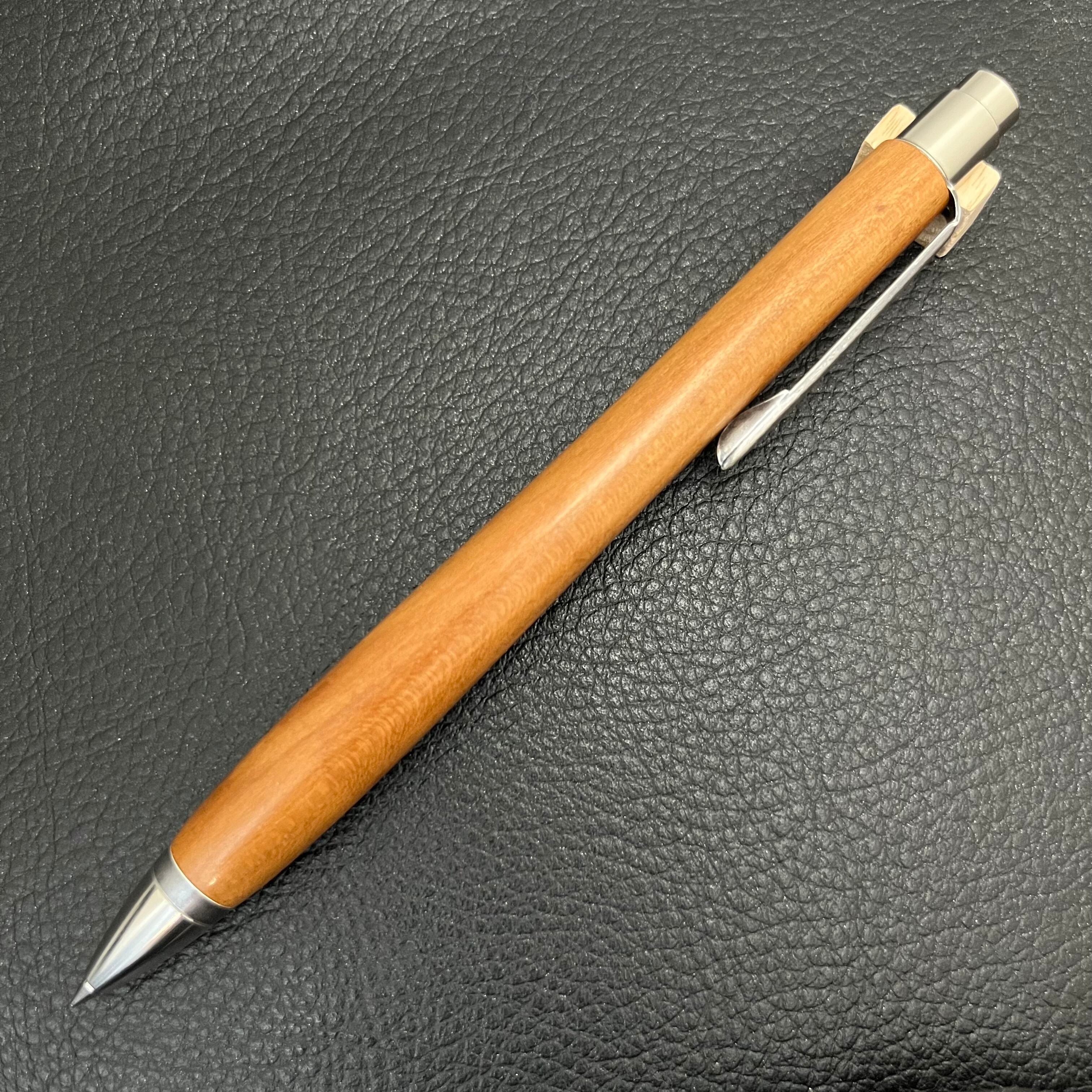 ボールペンのノックシステムは、ドイツ最高のクリックメカニズムを採用してあります。このメカニズムはユニークな機構のため、クリックしたときのカチカチ音が静かで、どんな場所でも気兼ねなく使うことができます。滑らかに動くこのプッシュ感覚を一度味わうと他には戻れなくなってしまうほどの魅力があります。 100分の1単位の加工精度で削り出されたペン先は、軸ブレも全くありません。