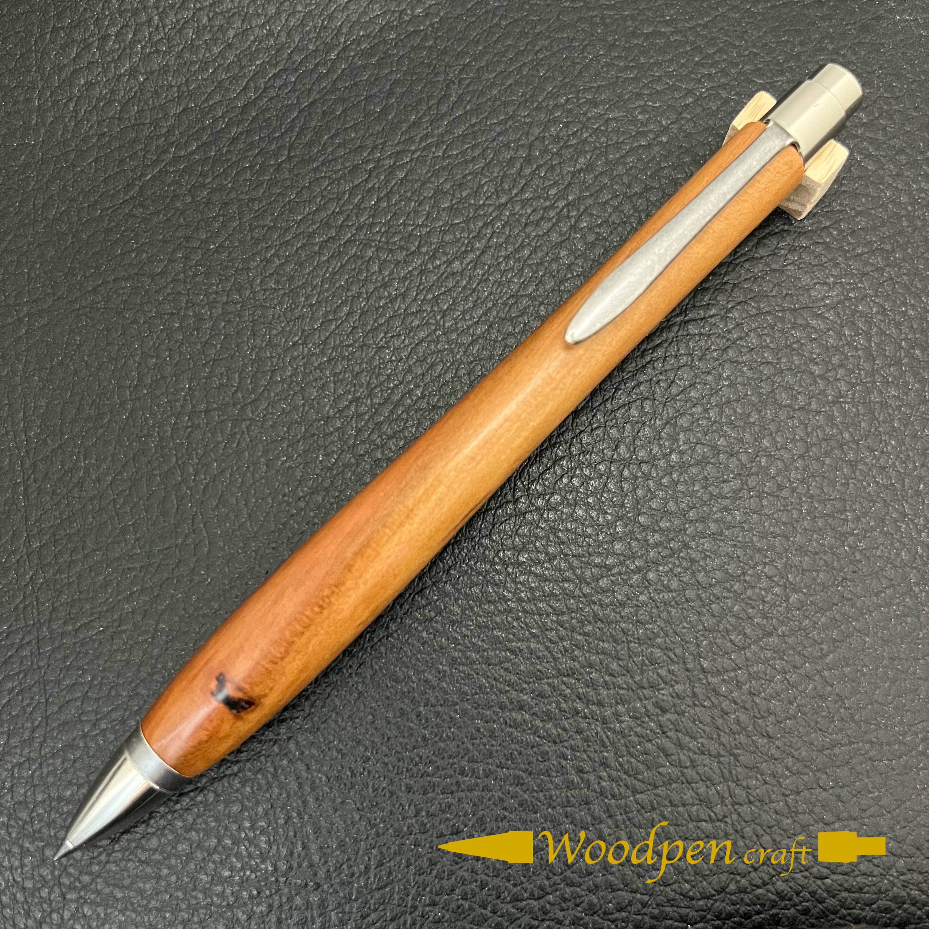 ボールペンのノックシステムは、ドイツ最高のクリックメカニズムを採用してあります。このメカニズムはユニークな機構のため、クリックしたときのカチカチ音が静かで、どんな場所でも気兼ねなく使うことができます。滑らかに動くこのプッシュ感覚を一度味わうと他には戻れなくなってしまうほどの魅力があります。 100分の1単位の加工精度で削り出されたペン先は、軸ブレも全くありません。
