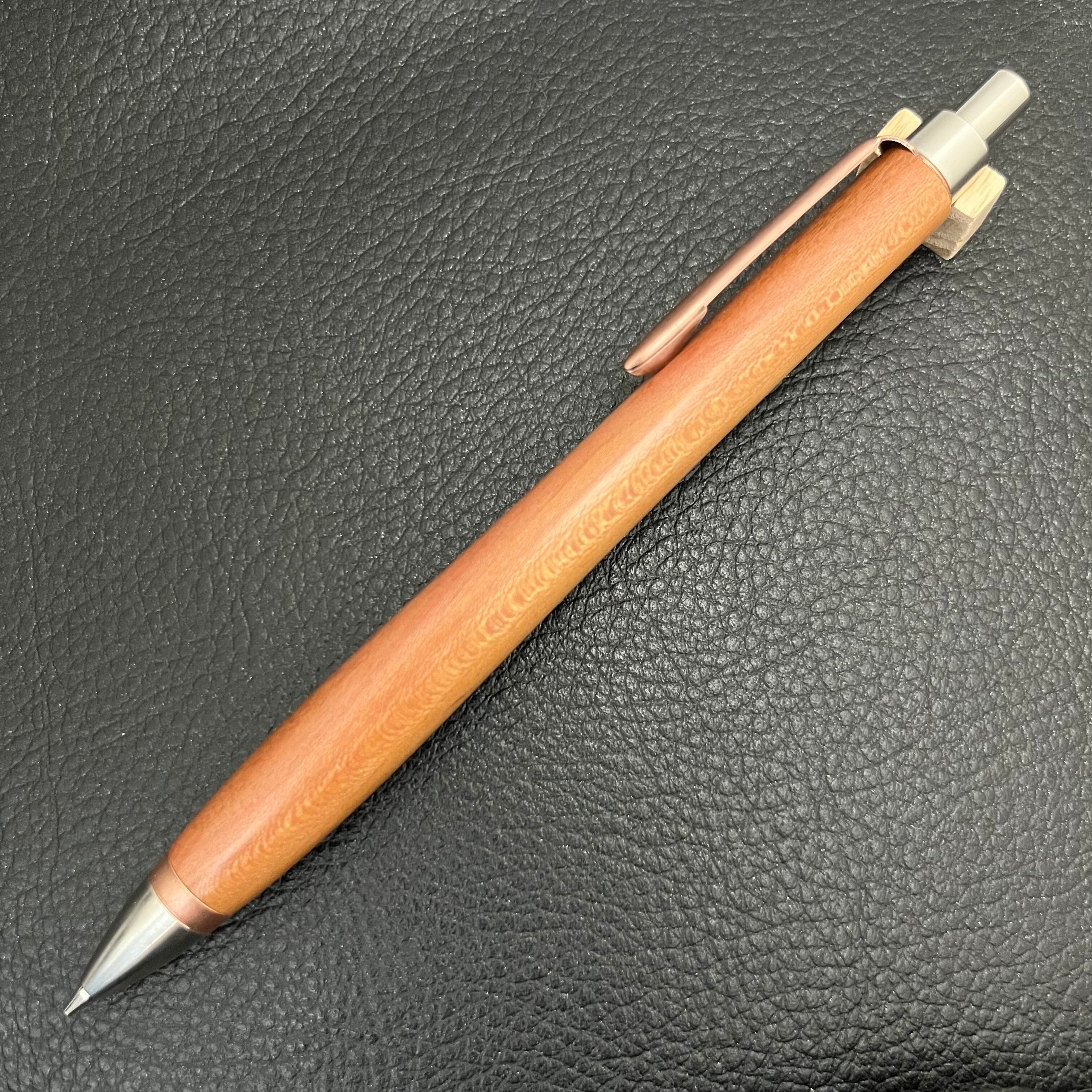ペンシルは軸ブレが起こりにくい固定式口金を採用し、木の表情を最大限に楽しめる木軸の長さと、書き心地にこだわったバランスで金具を設計してあります。