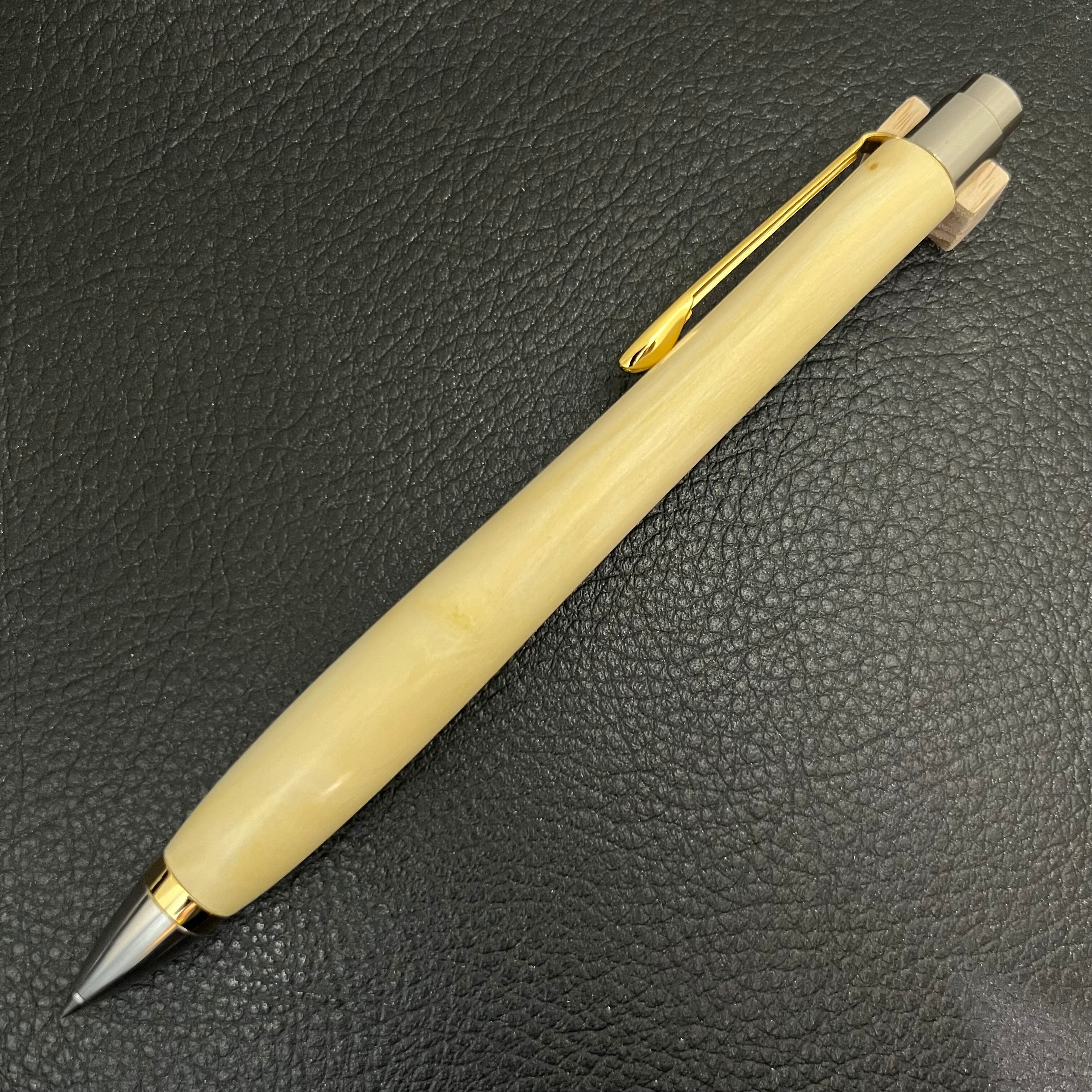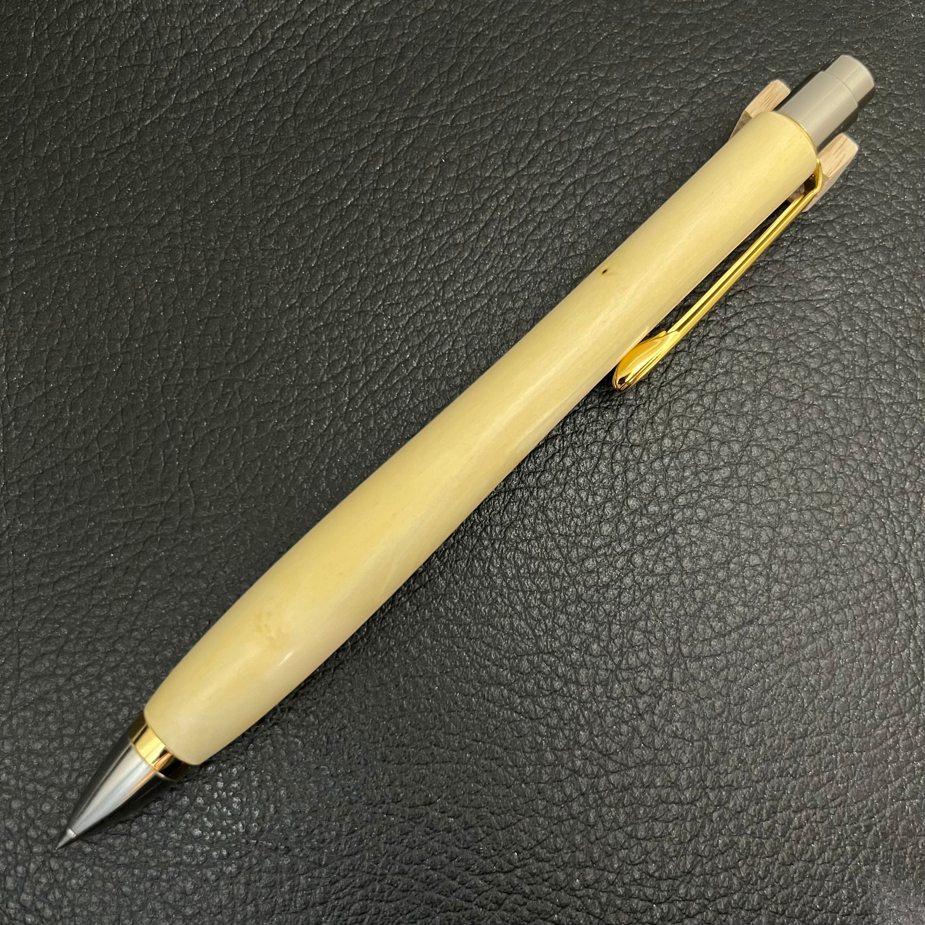 ボールペンのノックシステムは、ドイツ最高のクリックメカニズムを採用してあります。このメカニズムはユニークな機構のため、クリックしたときのカチカチ音が静かで、どんな場所でも気兼ねなく使うことができます。滑らかに動くこのプッシュ感覚を一度味わうと他には戻れなくなってしまうほどの魅力があります。 100分の1単位の加工精度で削り出されたペン先は、軸ブレも全くありません。